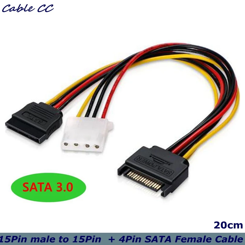 Cable de 15 pines macho a 15 pines IDE Molex hembra + Cable de alimentación SATA hembra de 4 pines Cable de datos de disco duro serie SATA3.0 al mejor precio