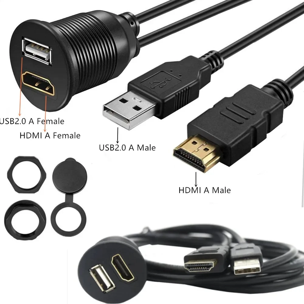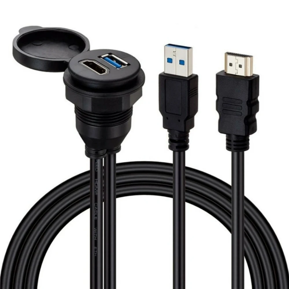 Comprar Cable 2 en 1 para Panel de salpicadero de coche, Cable de montaje empotrado para barco y motocicleta, resistente al agua, USB 3,0 y compatible con HDMI, 1, 2M