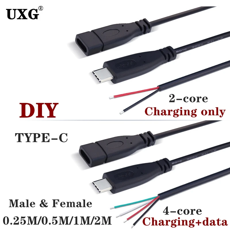 Comprar Cable de 2 pines y 4 pines USB 2,0 tipo C macho hembra extensión de enchufe tipo de soldadura USB-C conector de cargador de Cable de reparación DIY para Huawei Xiaomi