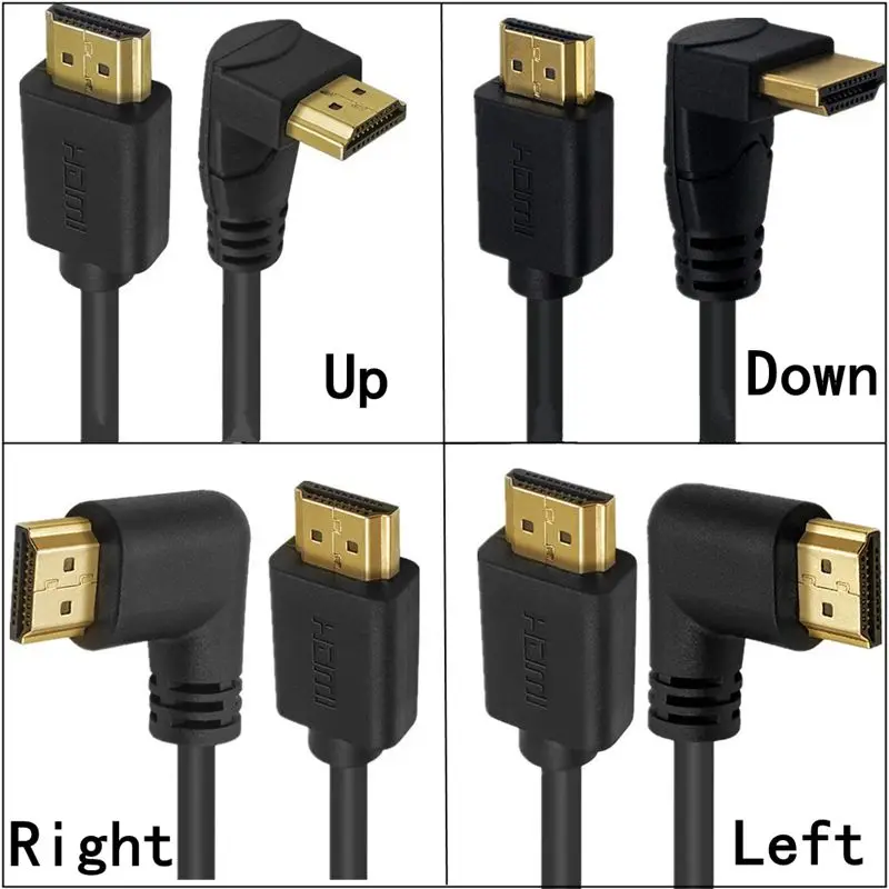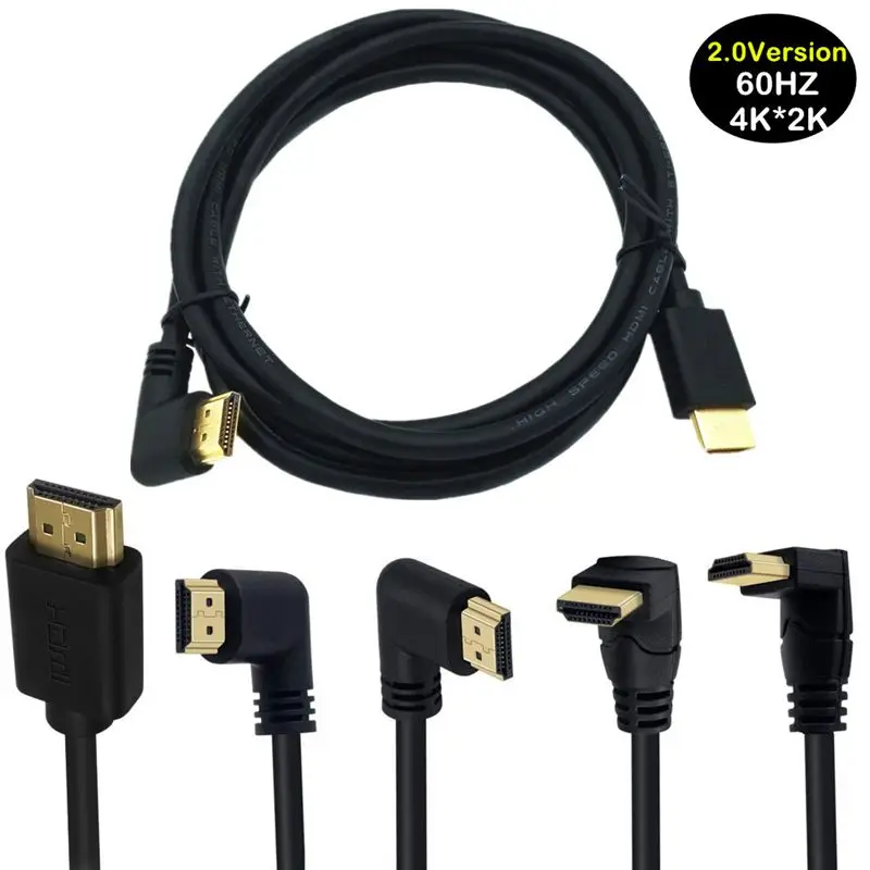 Comprar Cable 2,0 compatible con HDMI 4K, Cable HDTV de ángulo de 90/270 grados, 15CM, 0,6 M, 1,8 M, 1080P, 3D, para TV, PC, proyector, PS3, 4, ordenador Ultra 3D