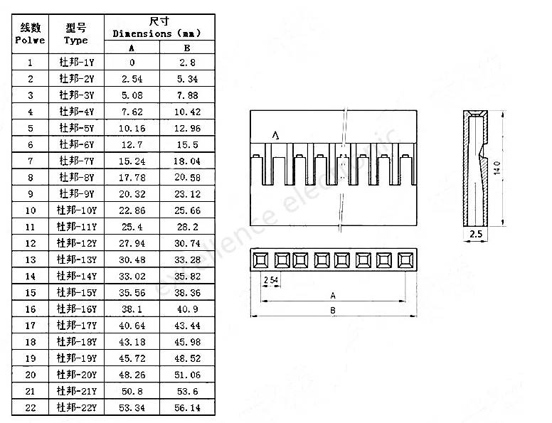 Cable de DuPont de 20cm Famale a Famale de doble cabeza 2,54mm 2/3/4/5/6/7/8/10P 26AWG línea DuPont