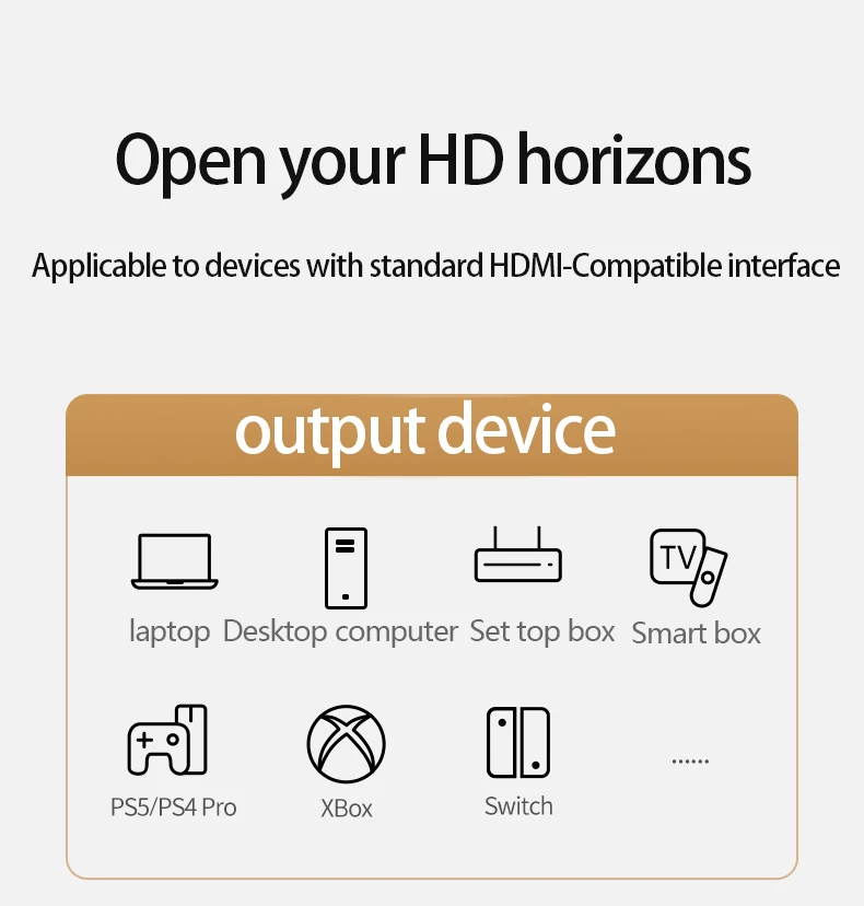 Compatible con 8K 50Hz, 4K 120Hz UHD, 4K 100Hz y más, el cable compatible con 8K versión HDMI 2,1 proporciona una experiencia cinematográfica Ultra HD y efectos visuales 3D, es compatible con sus dispositivos de transmisión, Apple TV 4K, NVIDIA SHIELD TV, reproductores de CD/DVD/Blu-ray, Fire TV, Roku Ultra, PS5, PS4, PS3, Xbox One/360, Nintendo Switch, ordenadores u otros dispositivos compatibles con HDMI a su TV 4K/HD, monitores, pantallas o proyectores.