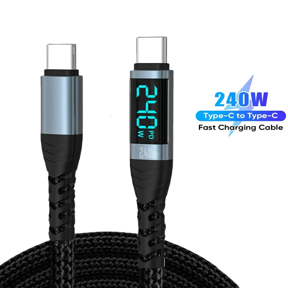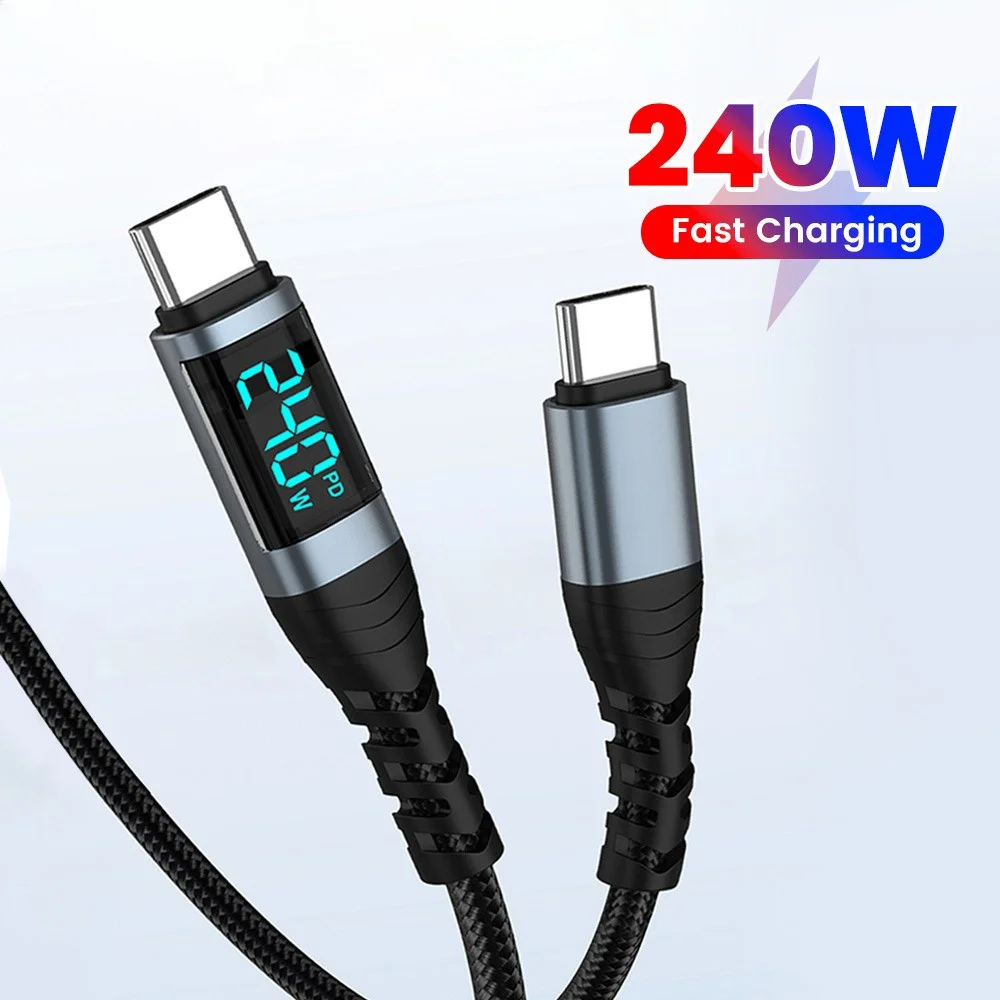 Cable de 240W tipo C a tipo C PD 3,1 cargador de carga rápida Cable de pantalla USB C a USB C para iPhone 15 16 Macbook iPad Cable de datos
