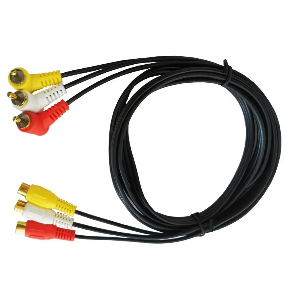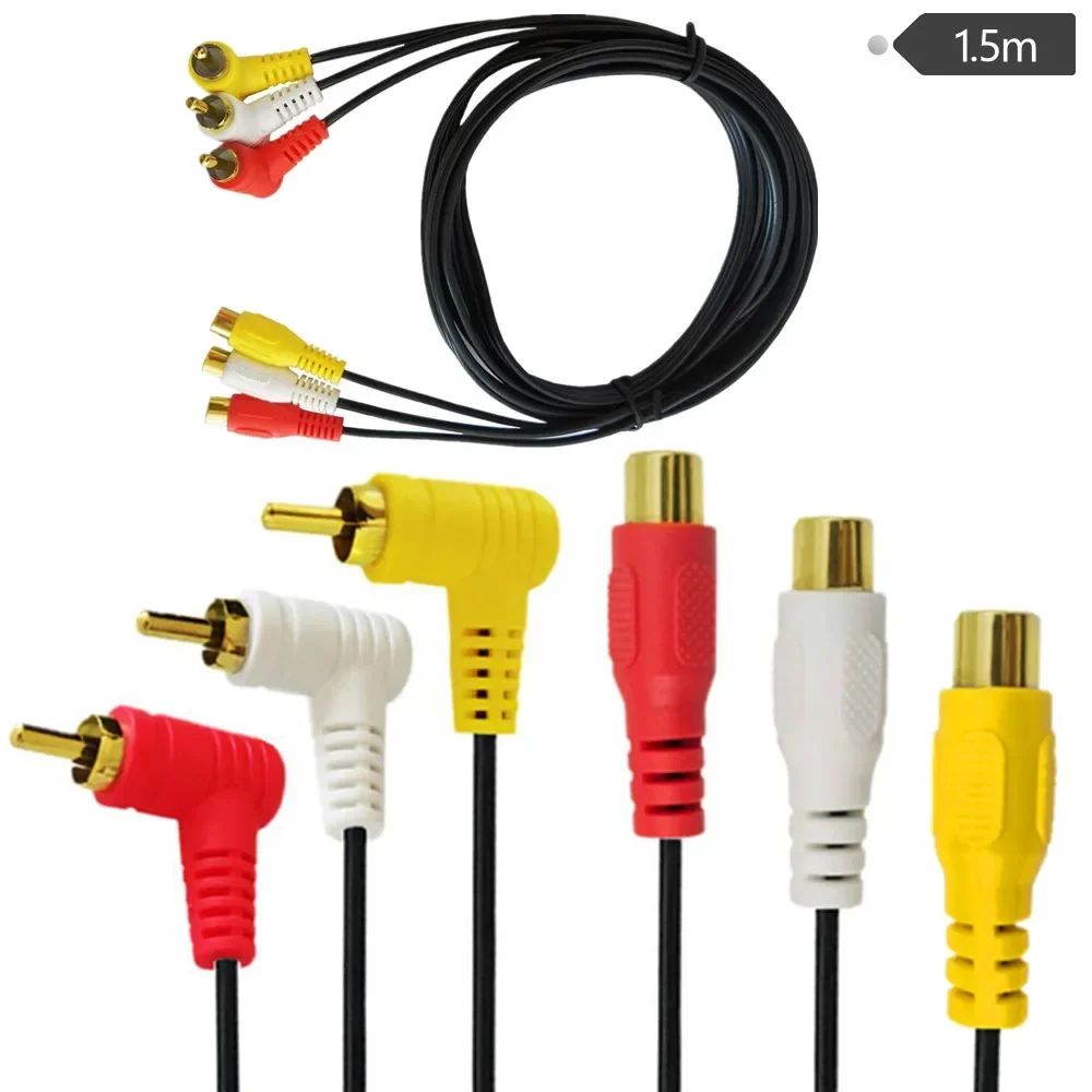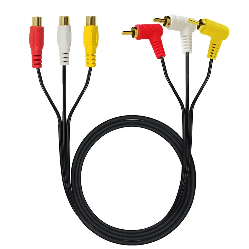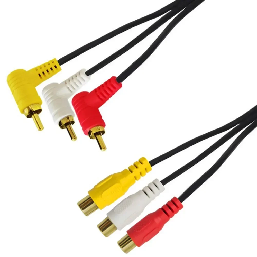 Cable RCA de 3 - Cable de audio/vídeo RCA de ángulo recto de 90 grados chapado en oro Cable AV de audio/V compuesto de 3 macho a 3 hembra de audio y vídeo de 1,5 m;