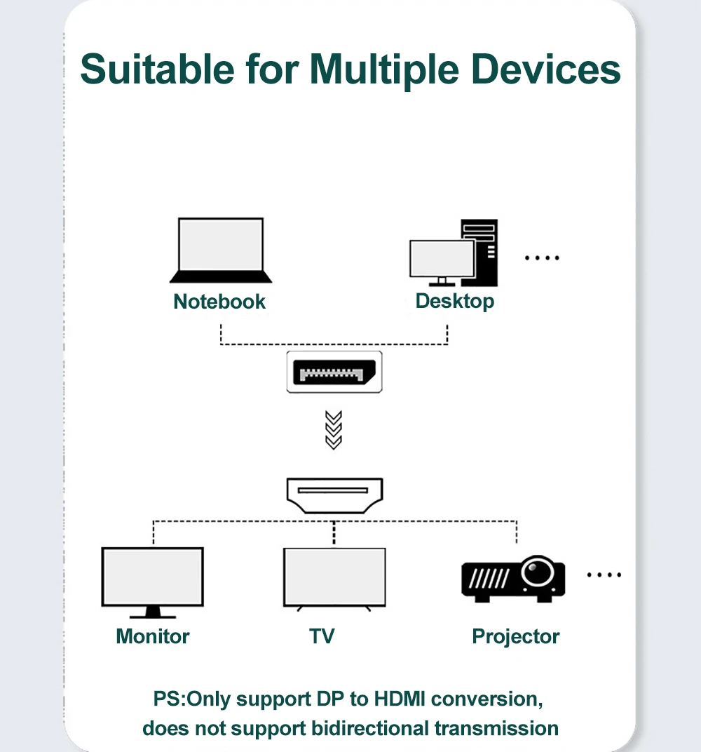 Igual que la descripción. Cable de UNA dirección. ¡Solo DP a HDMI! ! !