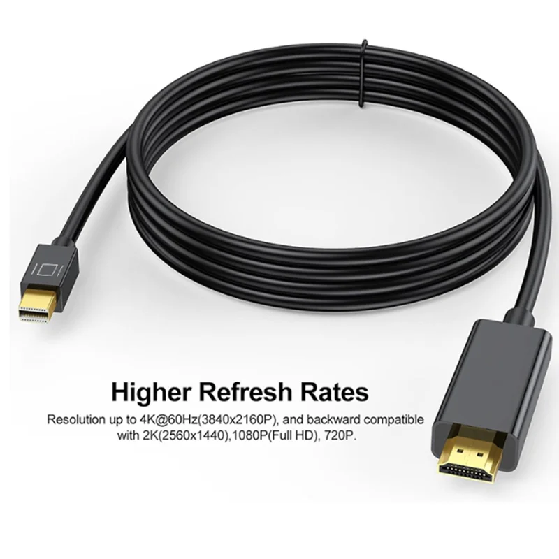 El cable Ultra HD 4K Mini DP a HDMI admite resoluciones máximas 4K a 60 Hz.4K(3840x2160)@60Hz / 2K(2560x1440) 1440P@60Hz / 1080P(1920x1080)@120Hz/60Hz con canales de audio digitales sin comprimir 7.1/5.1/2.