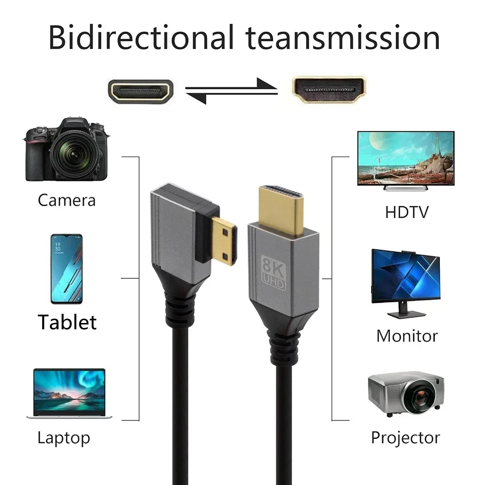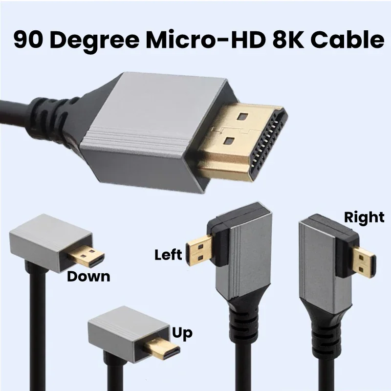 Comprar Cable 8K UHD 0,5 m 1m 90 grados arriba/abajo/ángulo izquierdo/derecho Mini-HD Puerto Micro-HD a HD Cable fino para cámara portátil Tablet videocámara