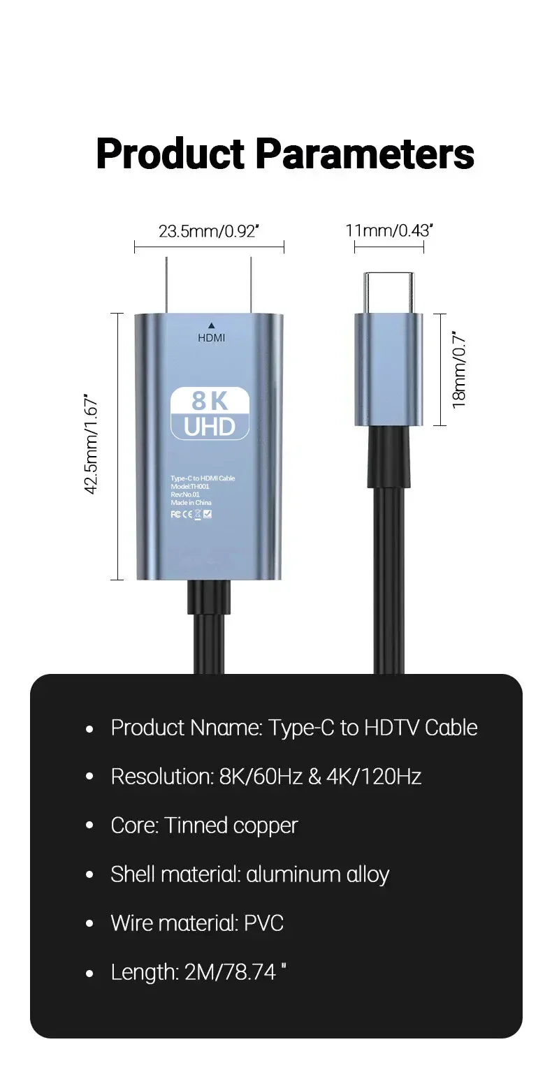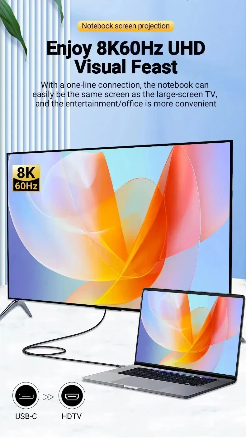 ●El cable USB tipo C a HDTV admite una resolución de vídeo de hasta 8K@60Hz (4K * 2K) y 4K@120Hz y Full HD [email protected] calidad de imagen en un monitor o televisor de 8K a 60 Hz con resolución UHD te sorprenderá.El cable HDTV Thunderbolt 3 también transmite sincrónicamente señales de audio y video, y admite modo espejo o modo extensión. Compatible con Windows 10/8/8,1/7/Vista/XP y Mac OS X, Linux y Chrome OS.