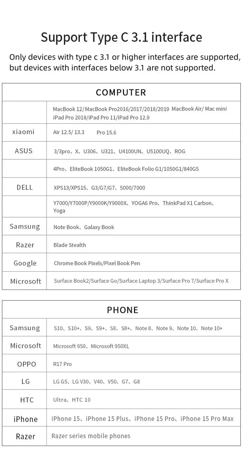 ●El cable adaptador USB C HDTV funciona perfectamente con computadoras con puerto USB-C con Thunderbolt 3.0 modos Alt como Macbook 2018/2016, Macbook Pro, Samsung S10 / S9 / S8 Plus / Note 9 / Note 8, iMac 2017 (como host), Huawei Mate 20/10, HTC 10, Dell XPS 13/15, Lenovo Yoga 900/910, Google Chromebook Pixel y otros dispositivos USB C.No es compatible con dispositivos que no admitan el protocolo del modo DP alt.Consulte su manual de usuario o confirme con nosotros para obtener asesoramiento de preventa.