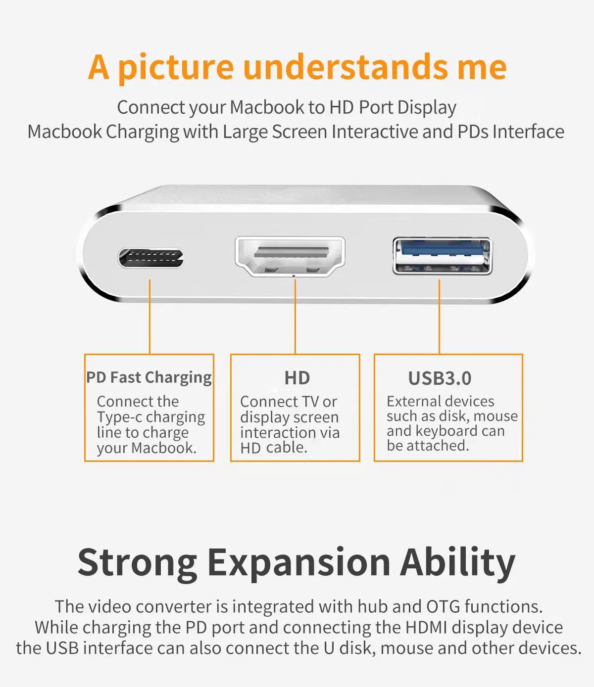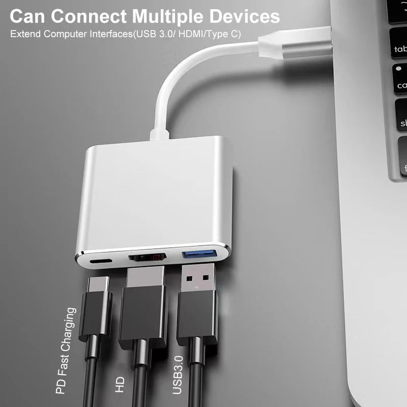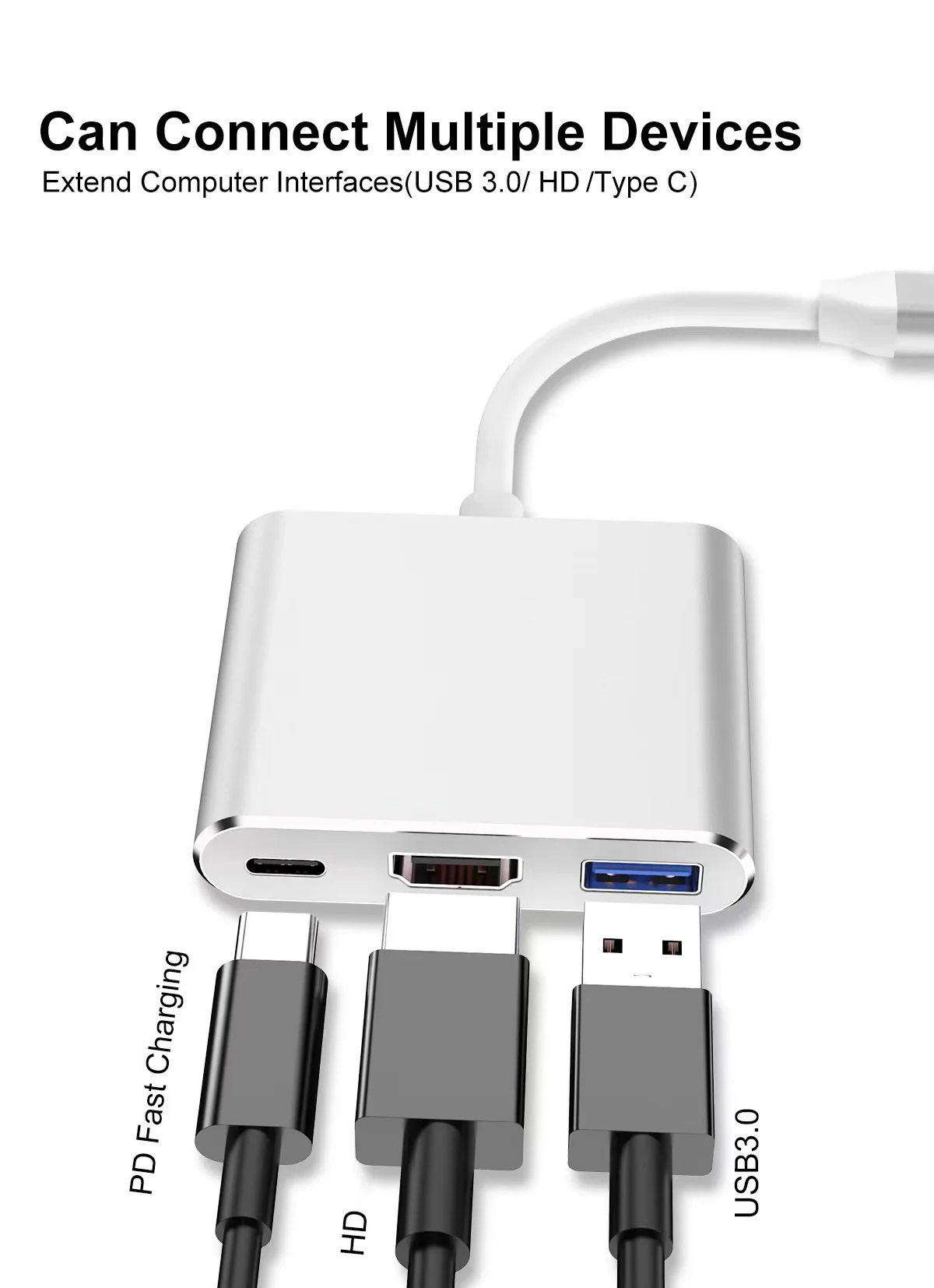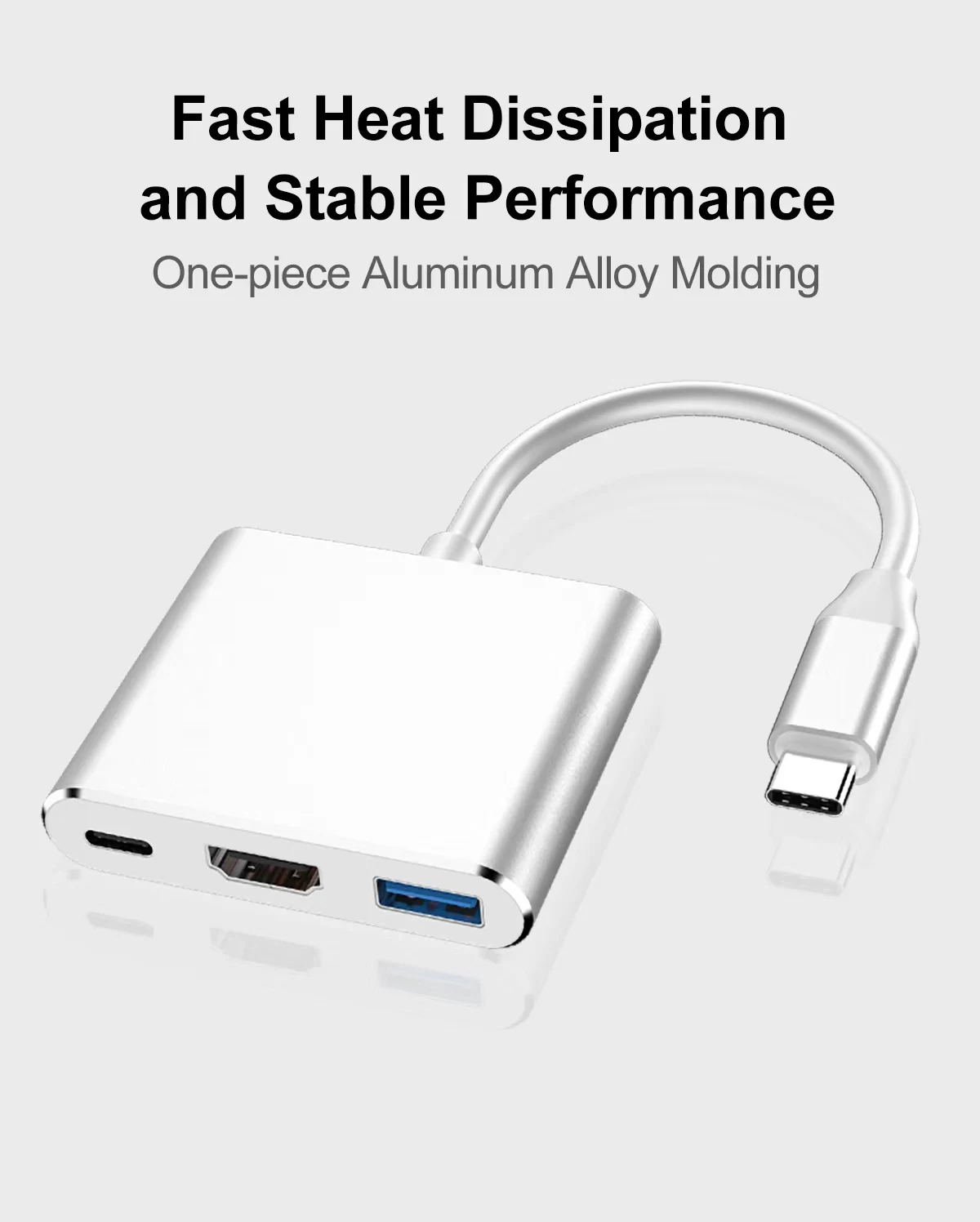 Comprar Cable adaptador 3 en 1 HD USB 3,0 tipo C a HDMI, convertidor de transferencia compatible con estación de acoplamiento 4K, compatible con pantalla Dual