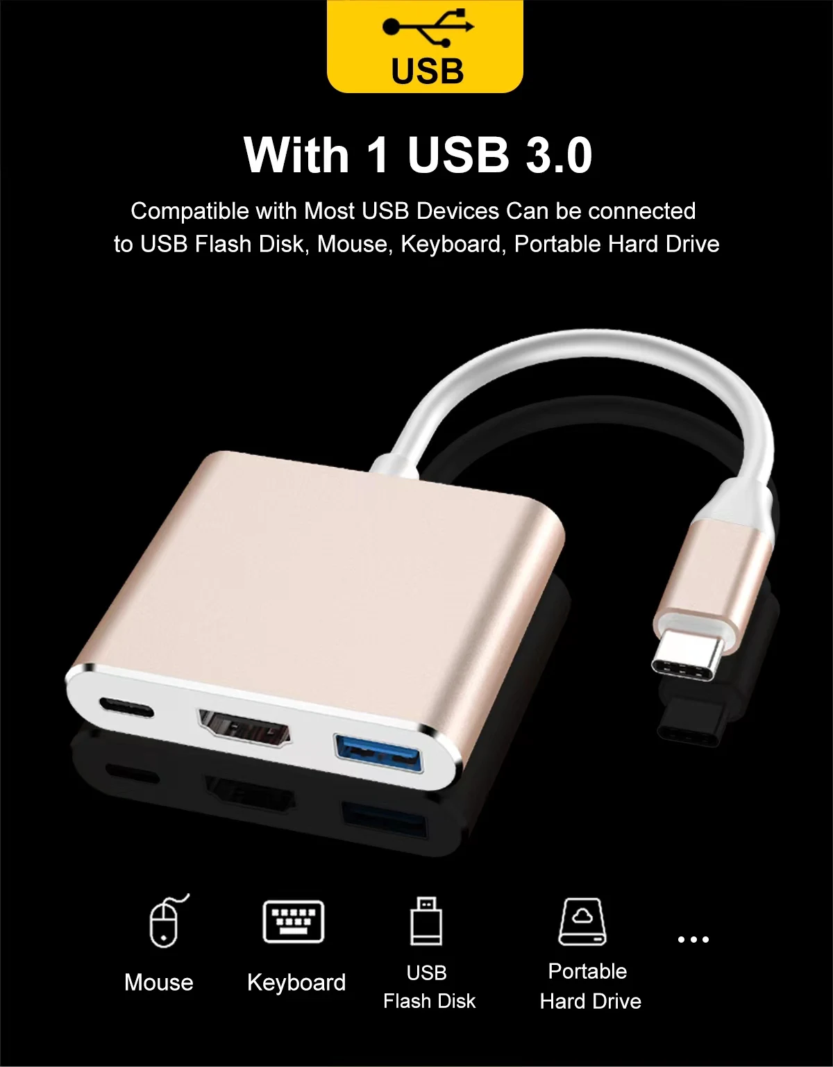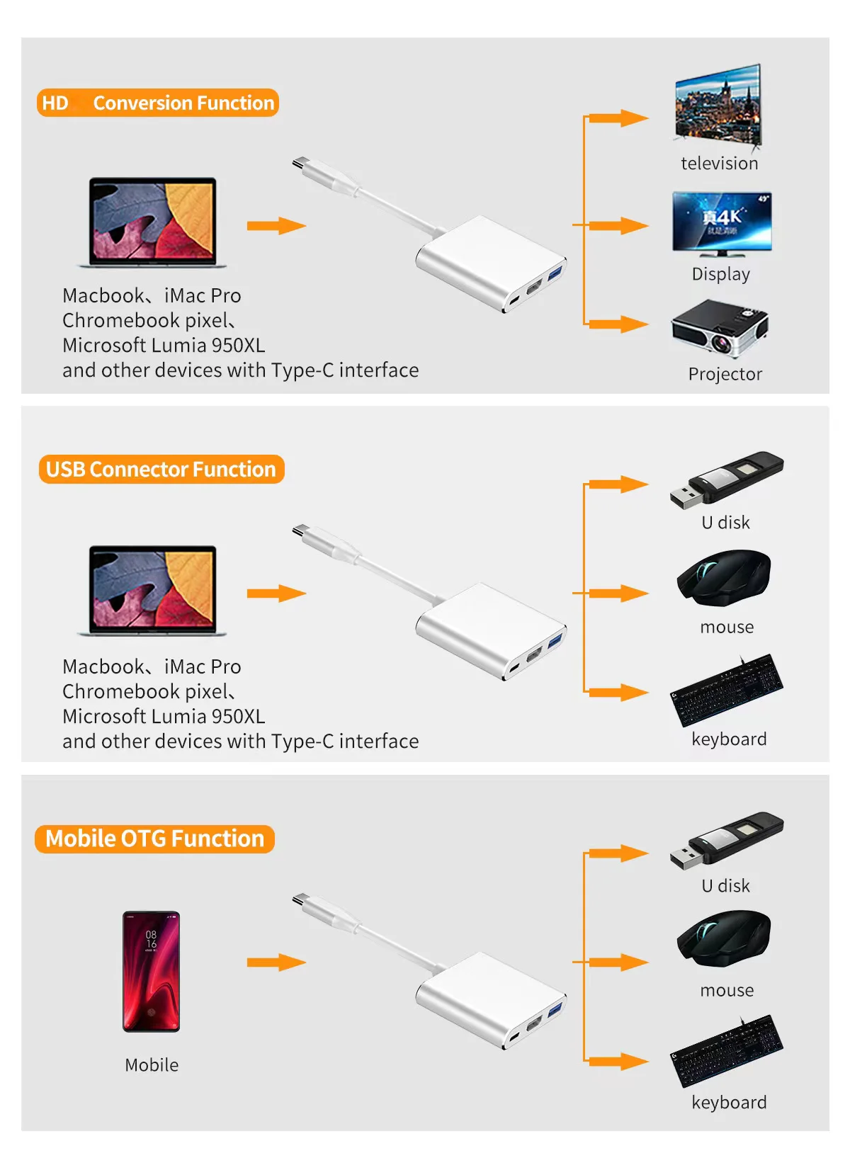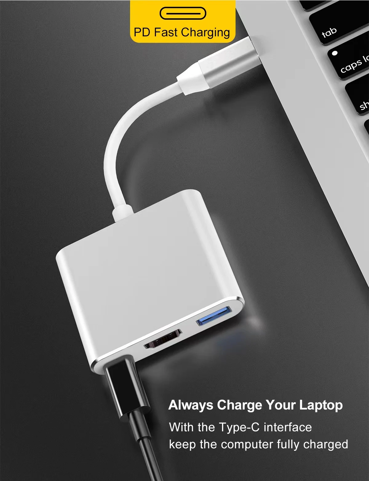 Comprar Cable adaptador 3 en 1 HD USB 3,0 tipo C a HDMI, convertidor de transferencia compatible con estación de acoplamiento 4K, compatible con pantalla Dual