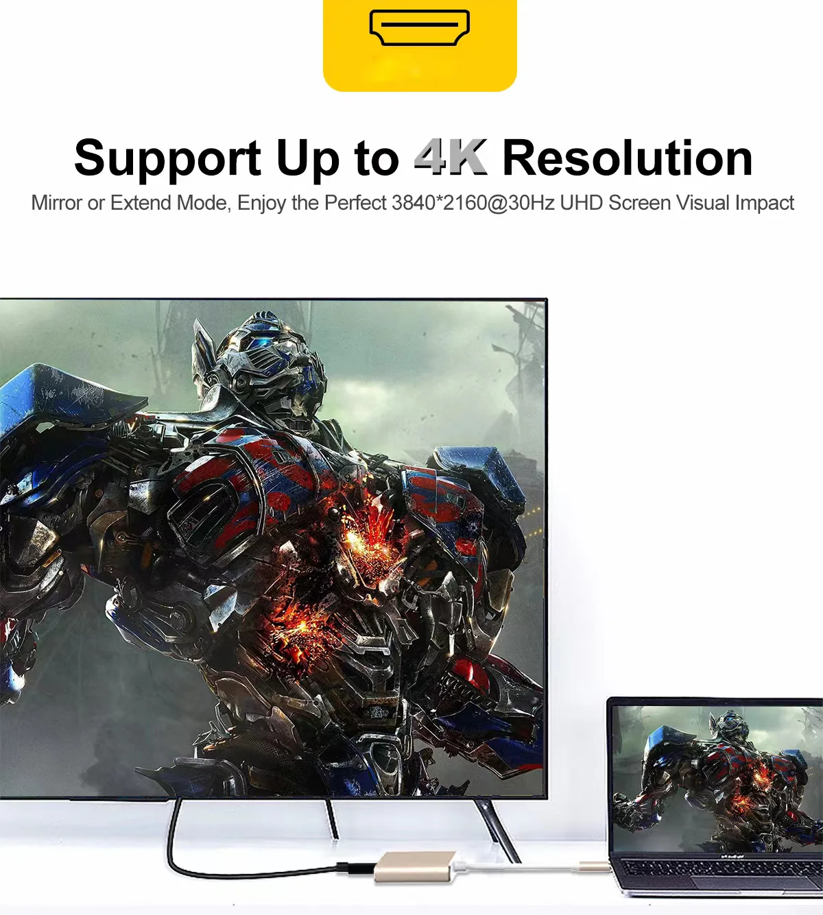 Admite resolución de vídeo de hasta 4K UHD (3840x2160) 30Hz y compatible con 1080P 60Hz, 720P.