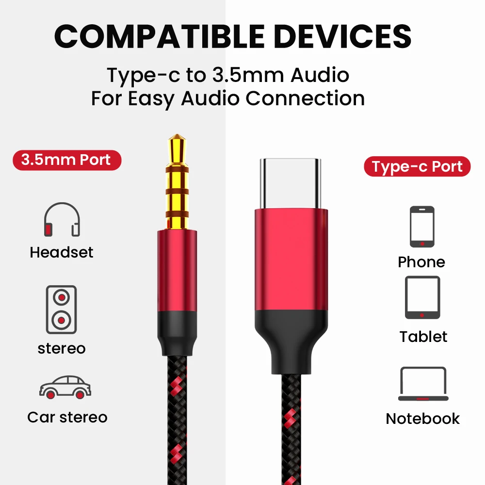 Comprar Cable adaptador de Audio auxiliar tipo C a Jack de 3,5mm, conector 3,5, altavoces tipo C a 3,5, accesorios de teléfono, Cable adaptador USB C
