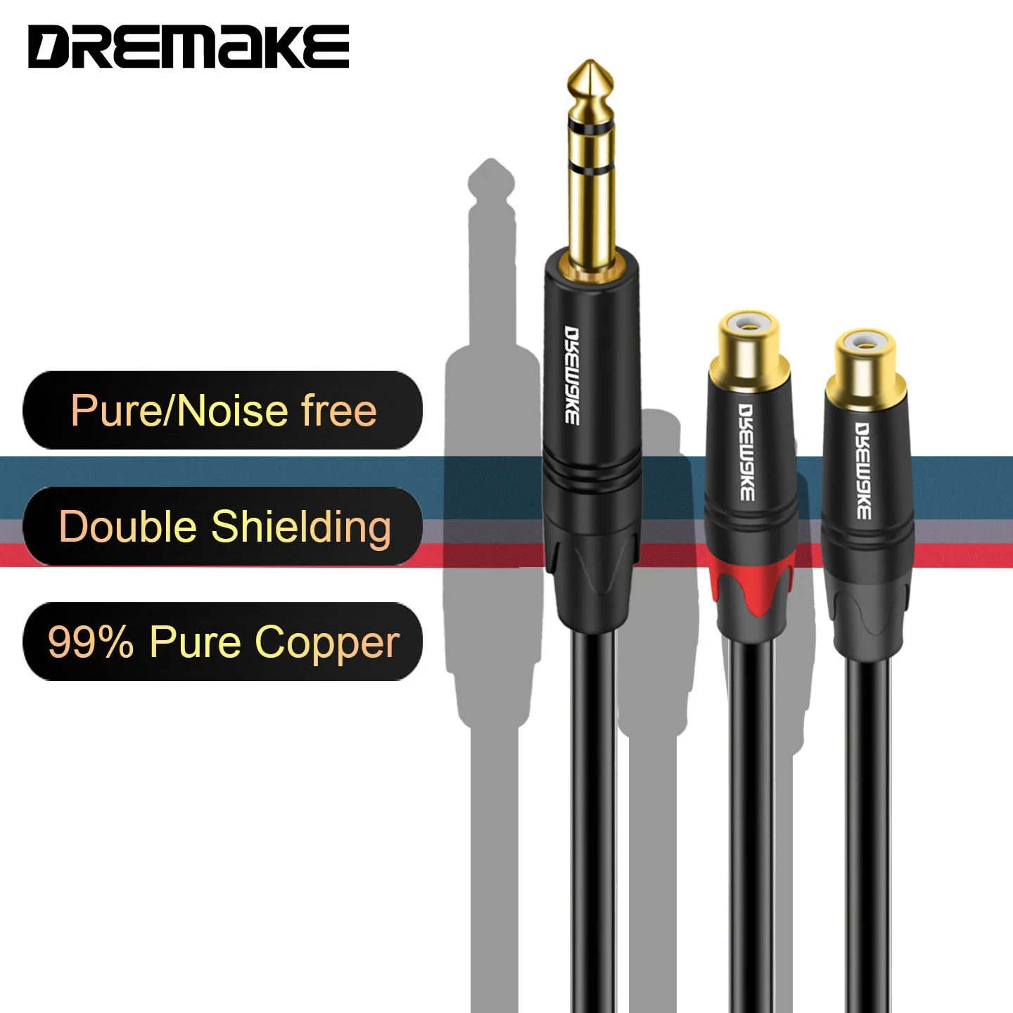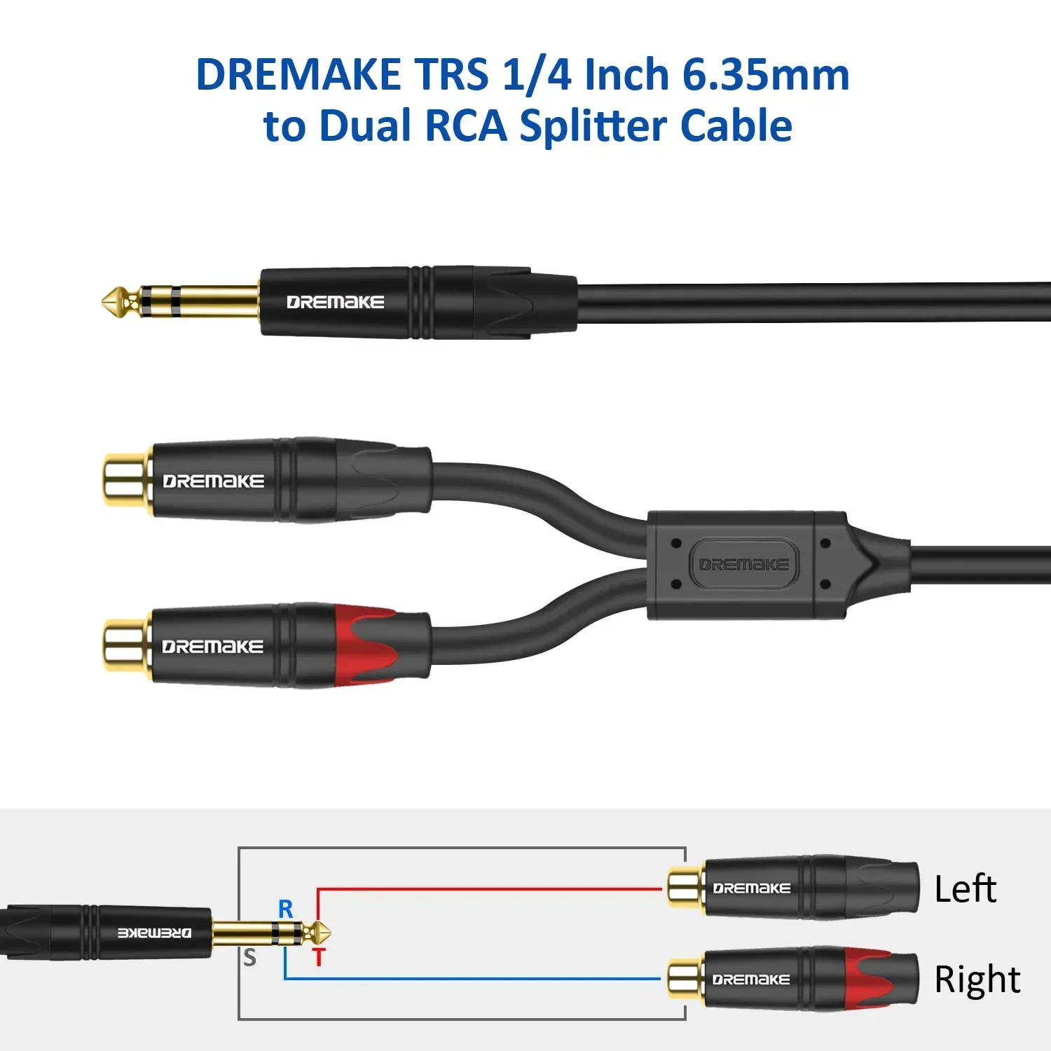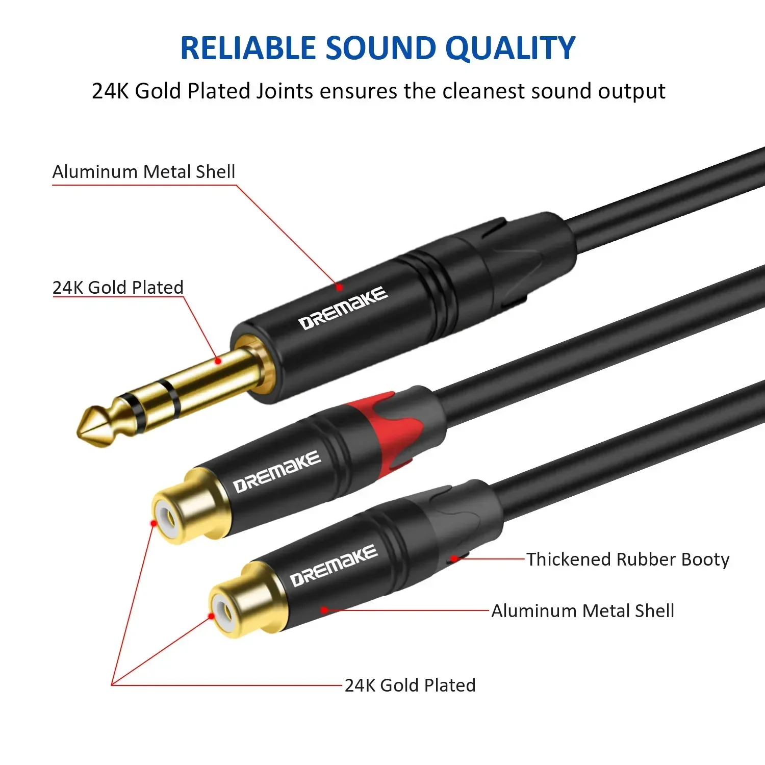 DREMAKE RCA a 1/4 Cable de audio, TRS 6,35mm Macho a 2 RCA Audio Y Cable divisor, 1/4 Estéreo a 2 RCA Conector Cable, RCA a 1/4 Cable de inserción, estéreo macho de cuarto de pulgada a cable hembra 2 RCA para receptor AV, amplificador, cine en casa, HDTV