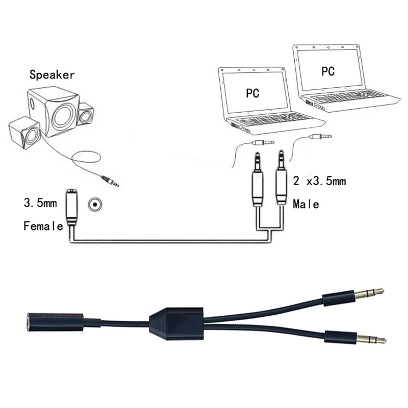Comprar Cable adaptador de Audio hembra de 3,5mm a 2x3,5, adaptador macho para PC, ordenador, altavoces, 3,5, una hembra y 2 fuentes de Audio públicas
