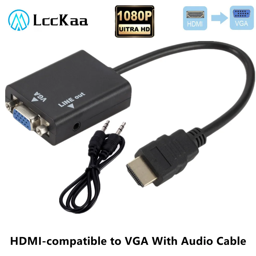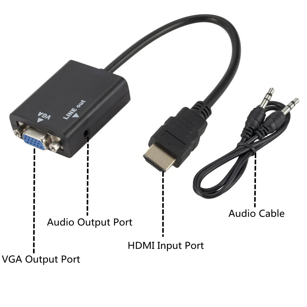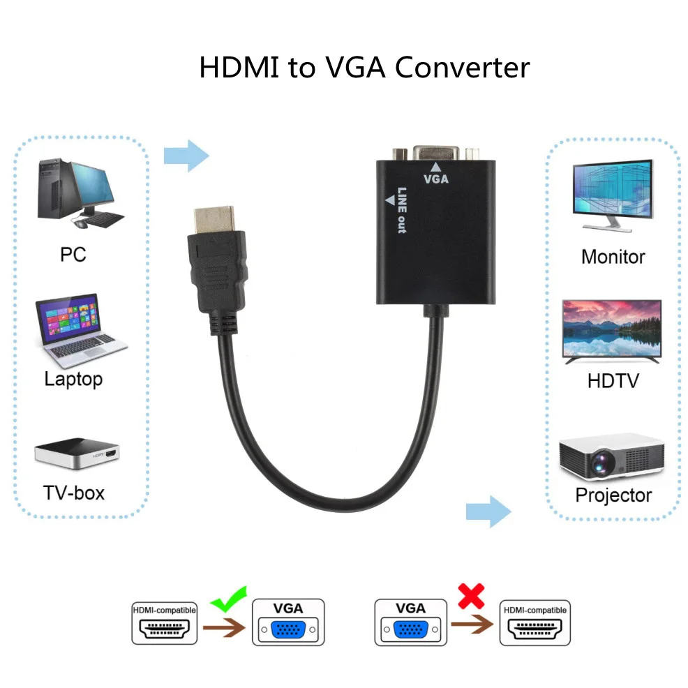 Comprar Cable adaptador de Audio y vídeo analógico Digital, compatible con HDMI, VGA macho a hembra, 1080P, HDMI a VGA, para PS3, PC, TV, proyector de pantalla