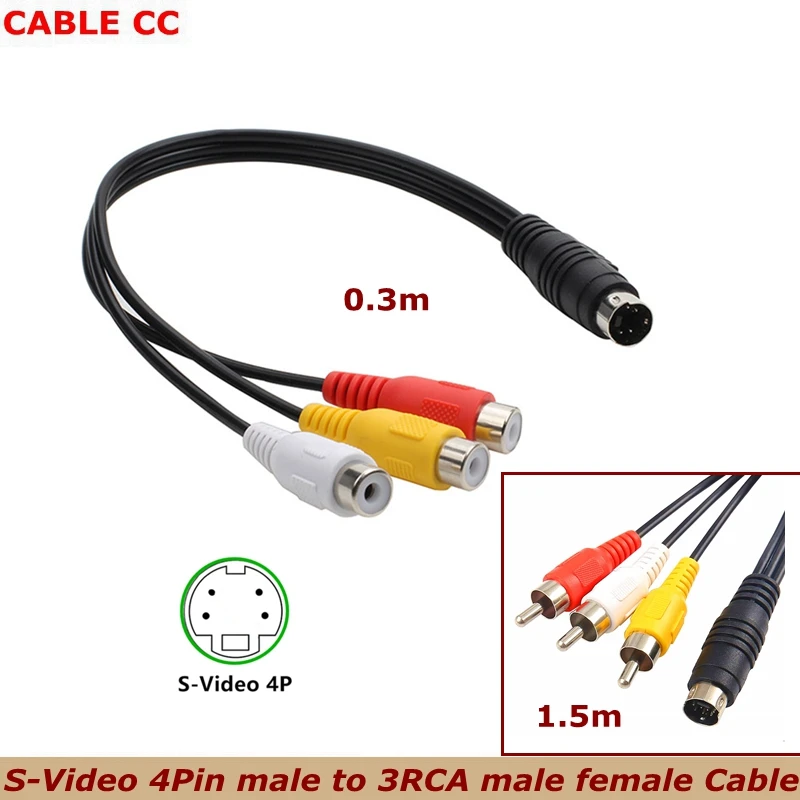 Comprar Cable adaptador de Audio y vídeo AV Mini DIN 4 Pin s-video macho a 3 RCA macho hembra, 30cm, 150cm, DVD, PC, TV