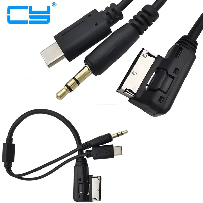 Cable adaptador auxiliar de audio y usb-c de medios a estéreo de 3,5mm en AMI MDI para Volkswagen Audi 2014 A4 A6 Q5 Q7