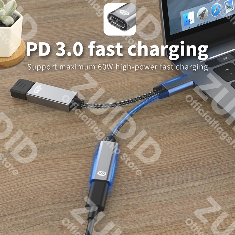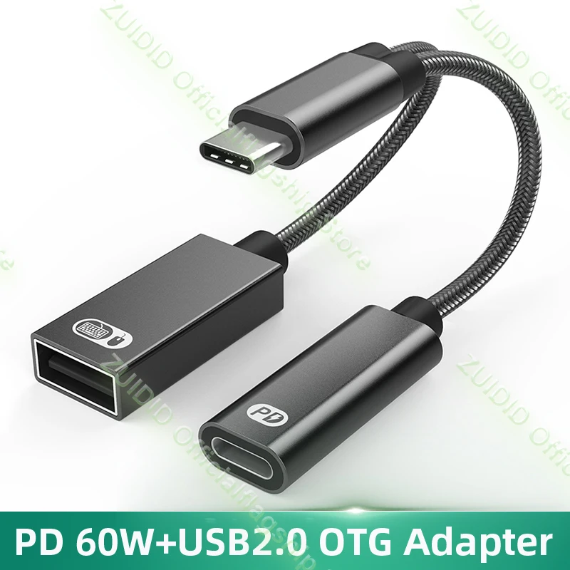 2 en 1 PD 60W USB C OTG Cable adaptador de carga tipo C a USB 2.0 convertidor de datos para iPad Pro Samsung Huawei Xiaomi tableta portátil