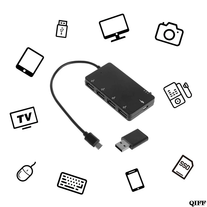 Comprar Cable adaptador de carga de energía para teléfono inteligente y tableta, Hub de 4 puertos Micro USB OTG, envío directo y venta al por mayor, APR28