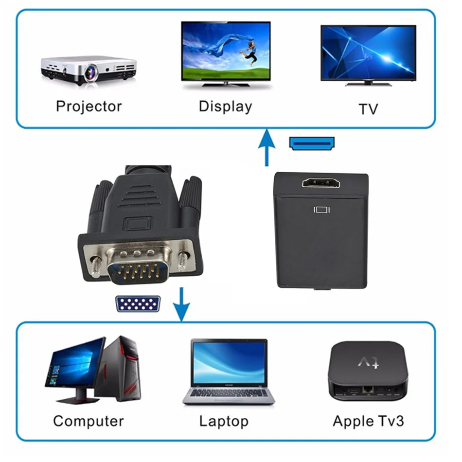 Adaptador convertidor compatible con HD 1080P VGA a HDMI
