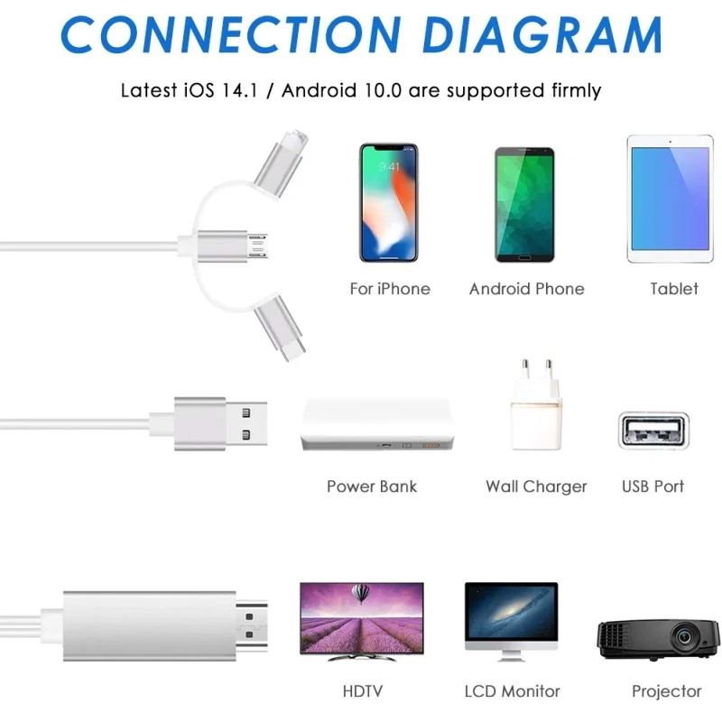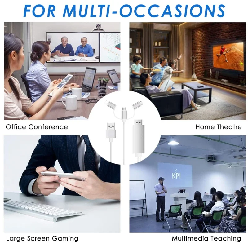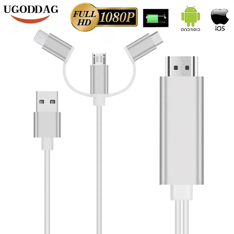 Comprar Cable adaptador Compatible con Lightning a HDMI, conector Plug Play 1080P, Micro USB tipo C, AV Digital, para teléfono HDTV, proyector y Monitor