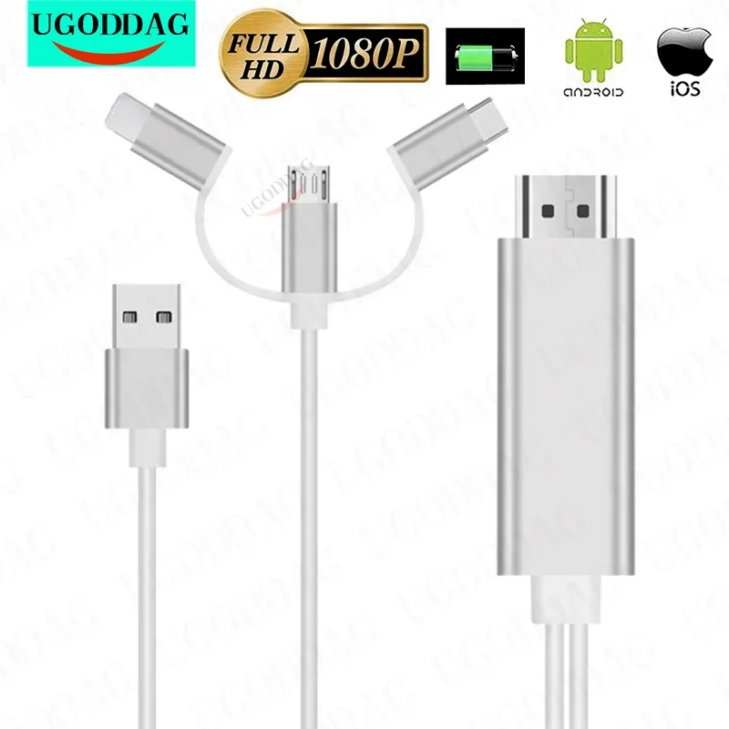 Comprar Cable adaptador Compatible con Lightning a HDMI, conector Plug Play 1080P, Micro USB tipo C, AV Digital, para teléfono HDTV, proyector y Monitor