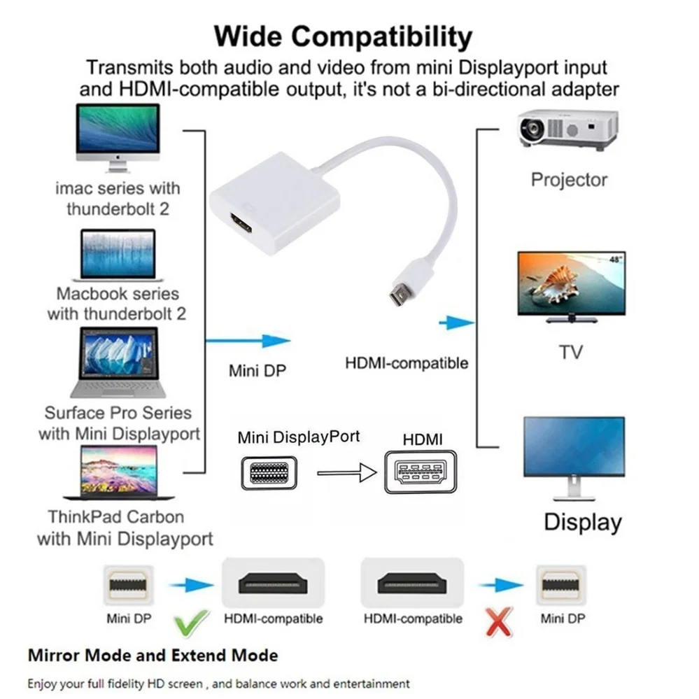 Cable adaptador compatible con Mini DisplayPort DP a HDMI HD 1080P Thunderbolt a convertidor compatible con HDMI para Mac Macbook Pro Air