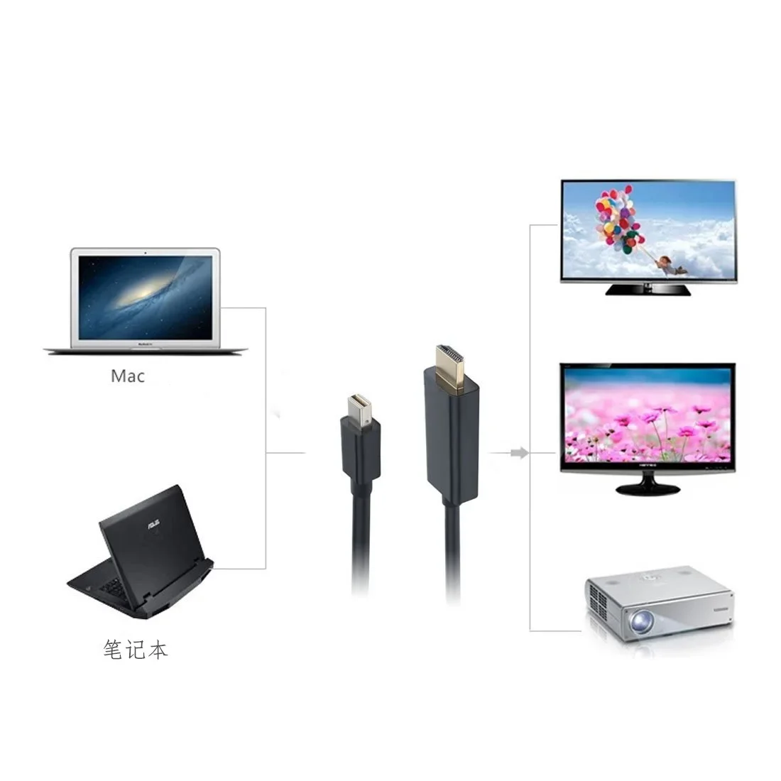 Cable adaptador Mini DisplayPort DP Thunderbolt a HDMI de 6 pies para MacBook Pro Air Conecte cualquier dispositivo con una interfaz Mini DisplayPort a un monitor o televisor con entrada HDMI Compatible con Apple MacBook, MacBook Pro, MacBook Air, Microsoft Surface y más Admite Mini DisplayPort v1.2 • Admite resolución de hasta 1080P Longitud: 1,8 metros/5,9 pies