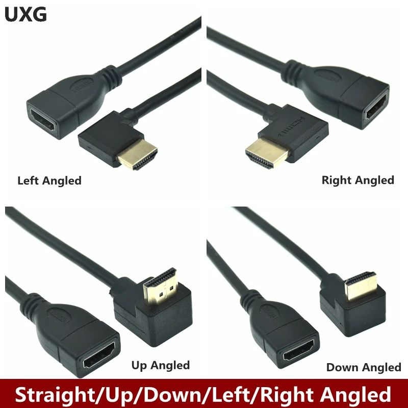 Comprar Cable adaptador de conector de extensión de 50CM, 15cm, arriba, abajo, ángulo derecho e izquierdo, compatible con HDMI, tipo macho a hembra, 1,4 v