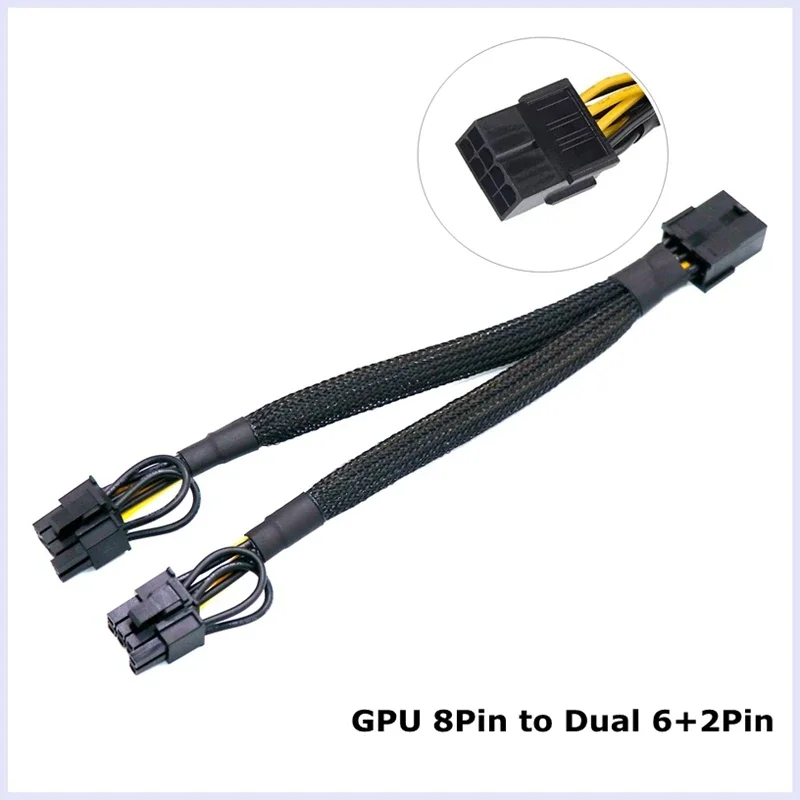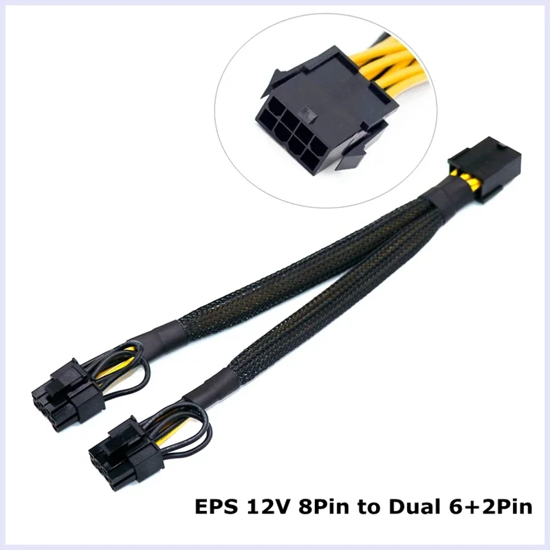PC ordenador EPS 12V 8Pin /GPU PCI-E 8Pin/6Pin a 2x6 + 2Pin convertir Cable adaptador para tarjeta gráfica Cable de extensión de alimentación 20cm