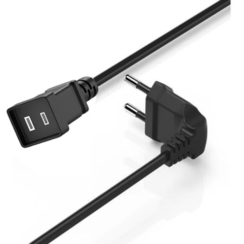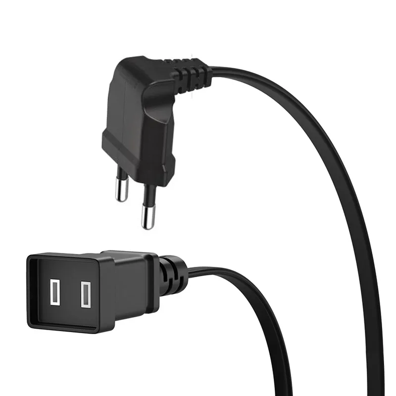 Este cable de extensión hembra polarizado de 2 pines de CA UE a EE. UU. es una solución perfecta para conectar productos electrónicos de consumo con un enchufe de CA de EE. UU. de 2 pines a un tomacorriente o una regleta de alimentación de la UE.