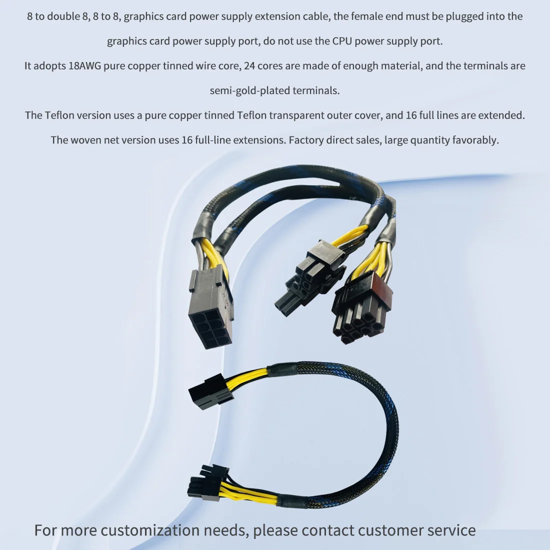 18AWG 8pin hembra a Dual 8pin(6 + 2) Cable adaptador de corriente macho 20cm/30cm Cable divisor de tarjeta gráfica PCI-E GPU Cable de alimentación