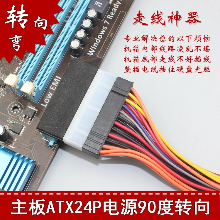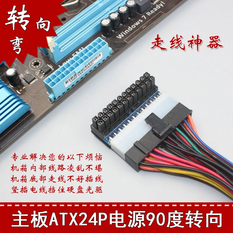 Comprar Cable adaptador de corriente de placa base ATX de 90 grados, 24 pines hembra a macho, para suministro de PC de escritorio