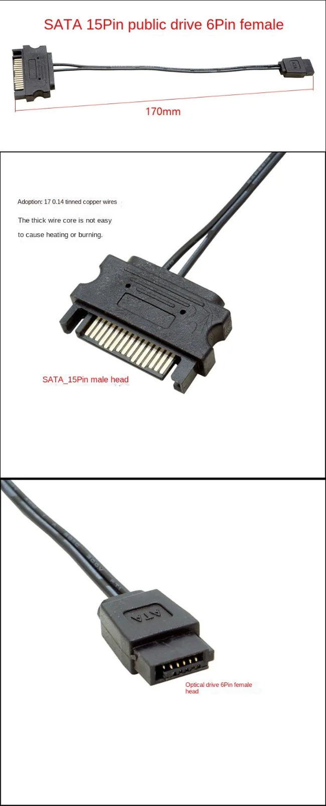 【Función del producto】: Conectado a la fuente de alimentación SATA, conectado a la unidad óptica 6P, comúnmente utilizada en computadoras de marca.