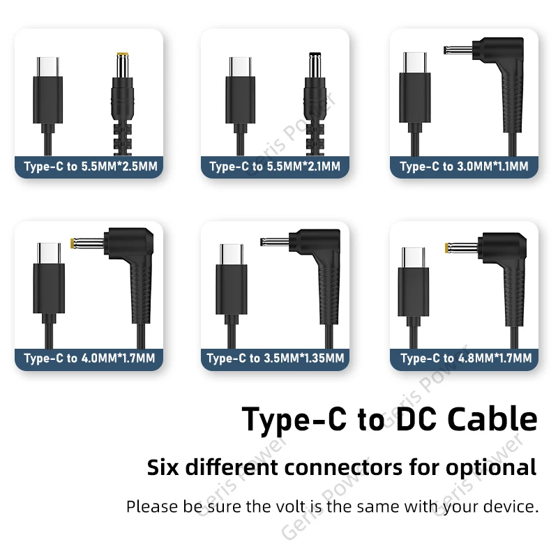 Consejos: asegúrese de que el voltaje de salida del cable sea el mismo que el de su dispositivo.