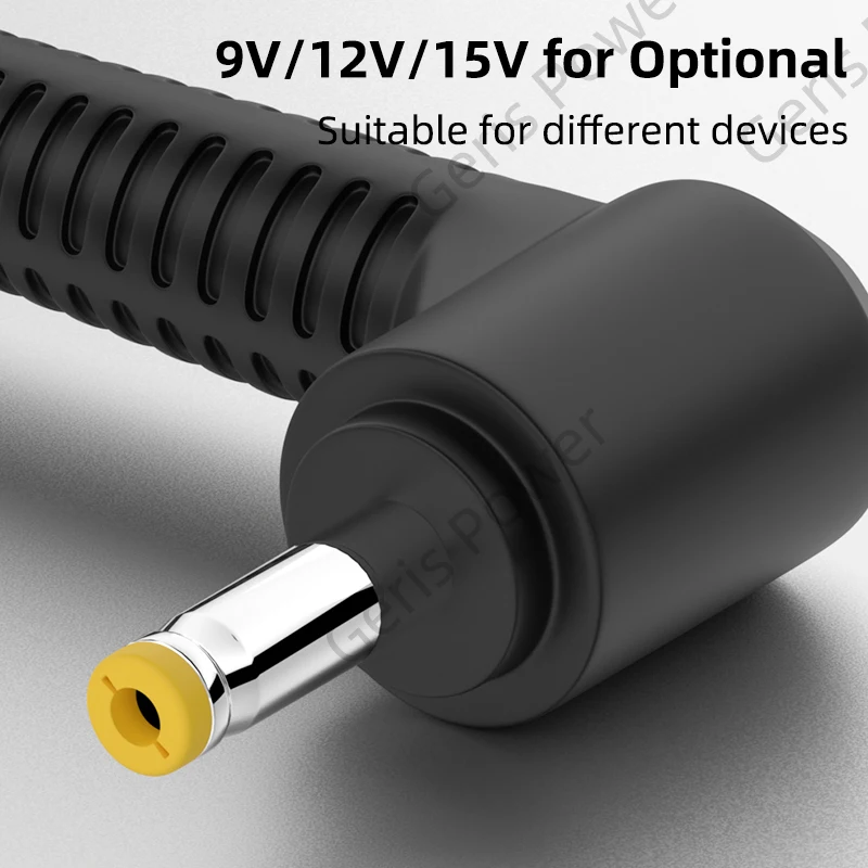 4. 6 conectores de cable diferentes con salida de 9V,12V,15V: 5,5*2,5mm/5,5*2,1mm/4,8*1,7mm/4,0*1,7mm/3,5*1,35mm/3,0*1,1mm. Fácil de usar, enchufar y usar. (NOTA: 1. Compruebe y confirme el tipo de interfaz de sus dispositivos que necesita cargar antes de realizar el pedido.
