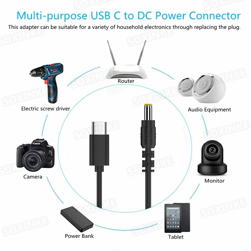 1. Conector multiusos: convertidor de adaptador de corriente USB C PD a CC, que lo hace compatible con la mayoría de los electrodomésticos. No tiene que preocuparse por encontrar los adaptadores adecuados cuando use varios dispositivos.