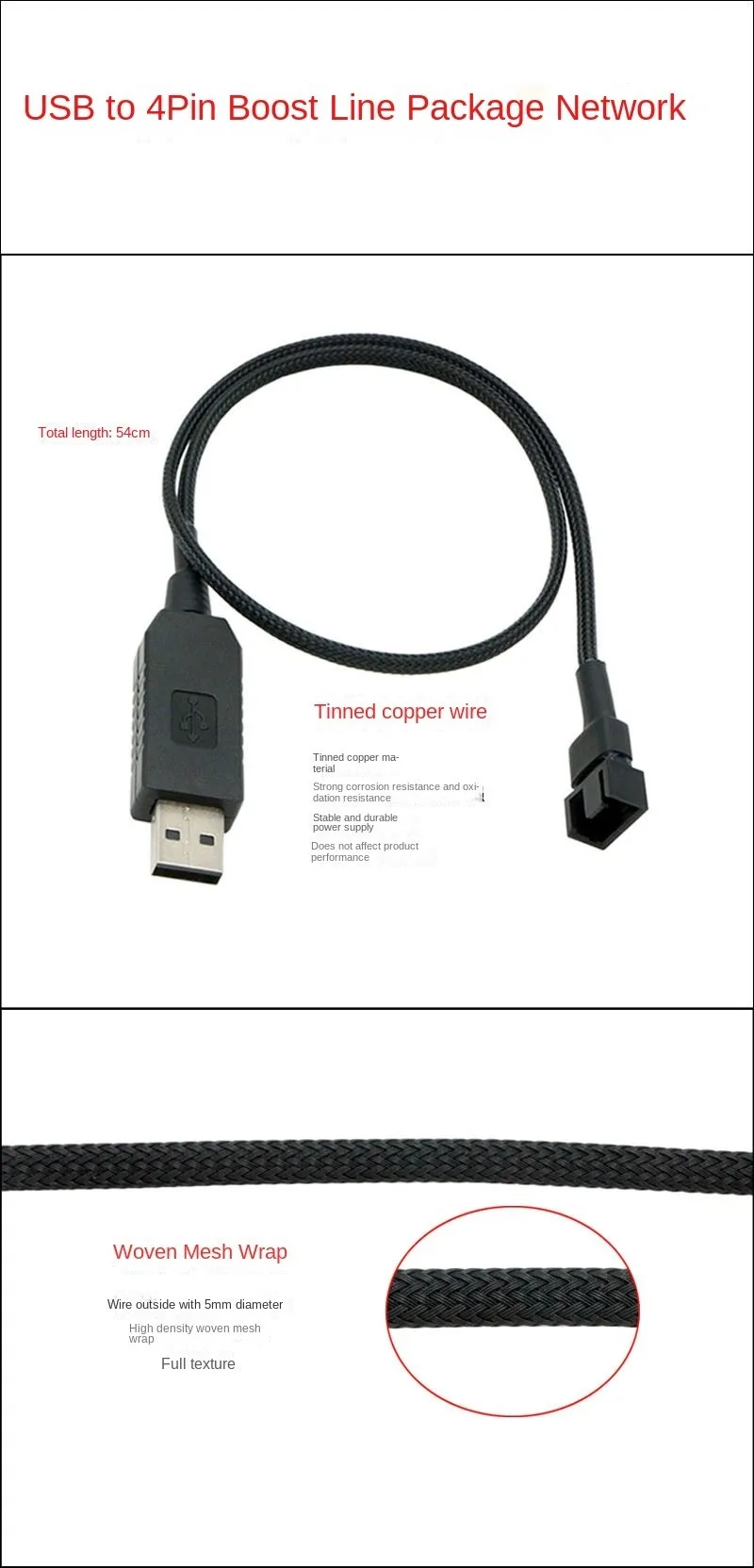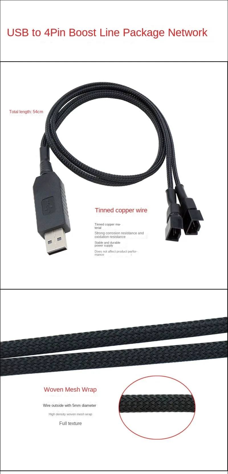 Solución de alimentación de ventilador universal: alimente fácilmente cualquier ventilador de refrigeración de PC de 3 o 4 pines directamente desde un puerto USB tipo A, lo que garantiza velocidades completas de ventilador de 12 V para una refrigeración efectiva. Amplificador de voltaje integrado: el circuito elevador de 12 V incorporado aumenta la salida USB estándar de 5 V a 12 V (0,4 A máx.), lo que lo hace compatible con controladores PWM y concentradores de ventilador para un uso versátil. Versatilidad de enfriamiento: Ideal para mejorar el flujo de aire en dispositivos electrónicos con salida de alimentación USB, como consolas de juegos, receptores AV y enrutadores de red. Construcción robusta: compatible con RoHS con conectores completamente negros y funda de nailon negro de alta densidad, que ofrece durabilidad y una apariencia elegante con una exposición mínima al cable. Longitud del cable: 54 cm
