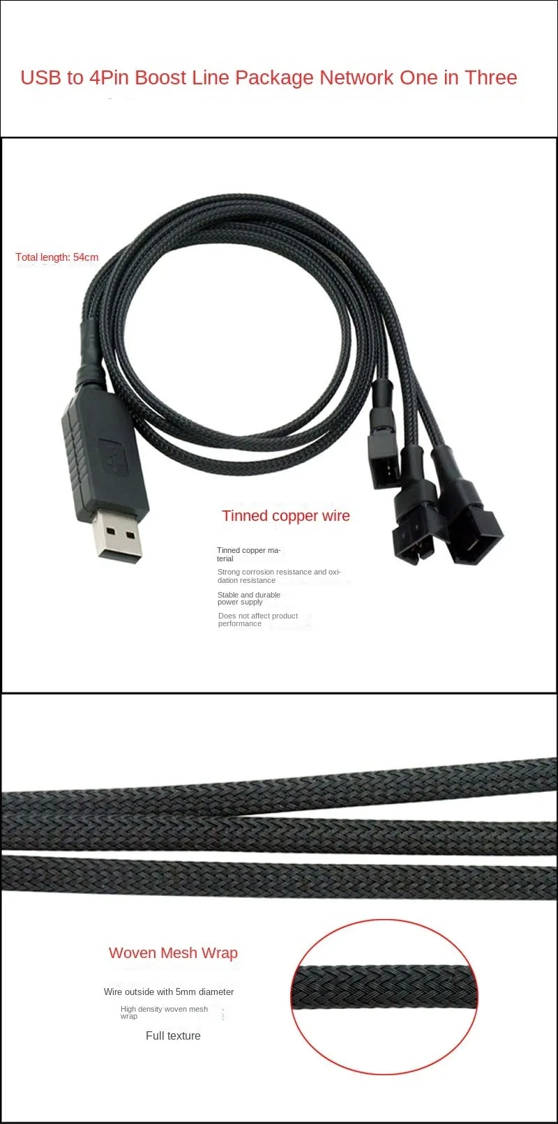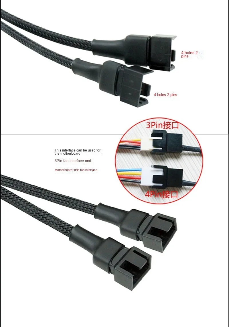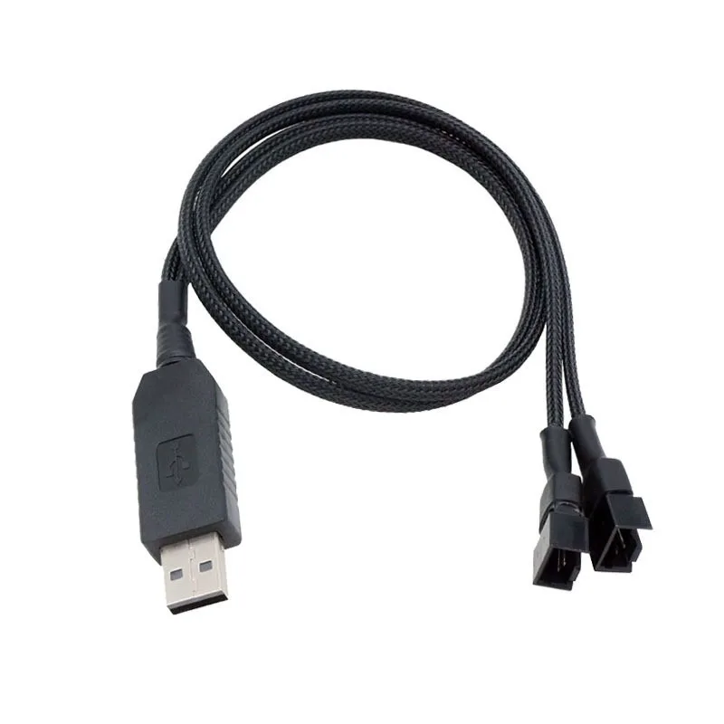 Cable adaptador de corriente para ventilador USB elevador de 12 V, funda negra de 1 a 2,1 a 3 - Adaptador de velocidad del ventilador completo para ventiladores de refrigeración de PC de 3 pines/4 pines