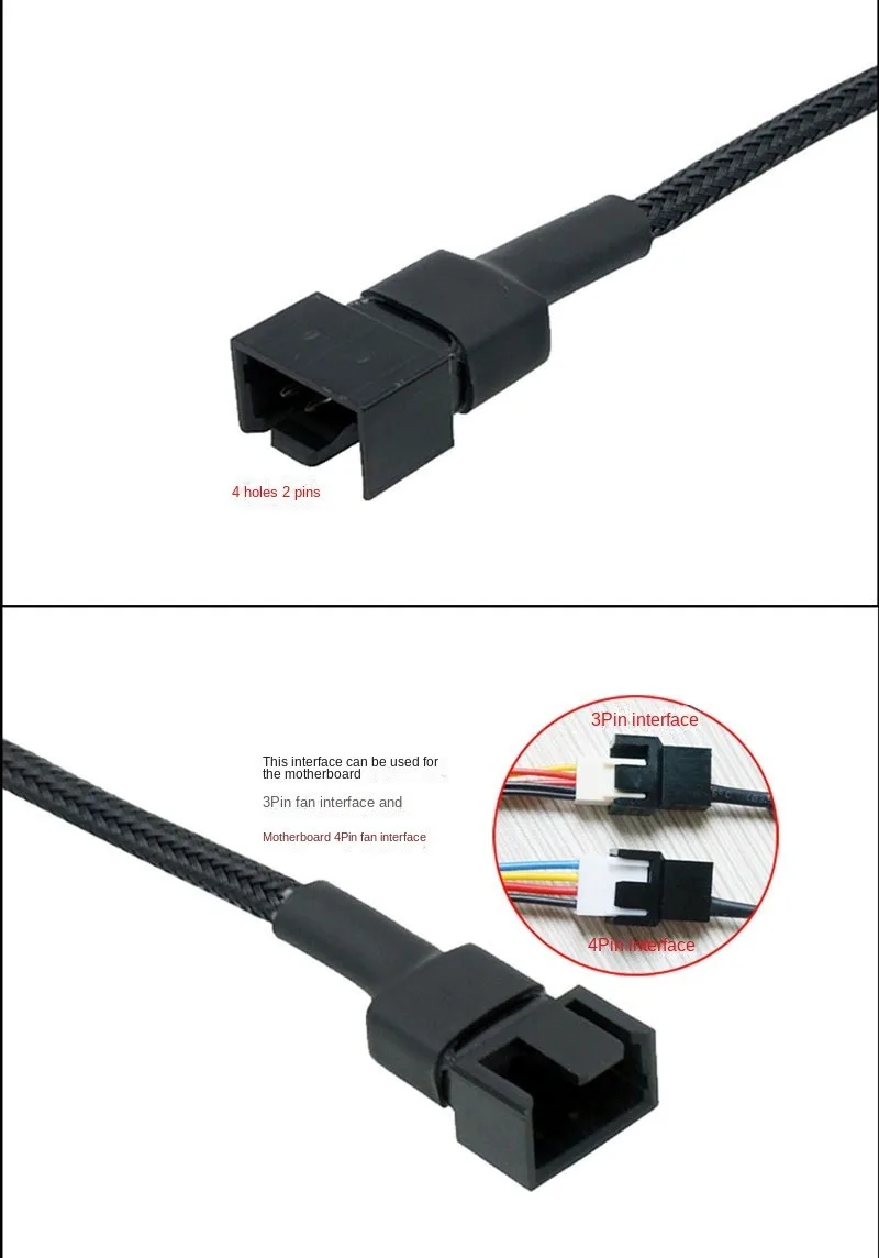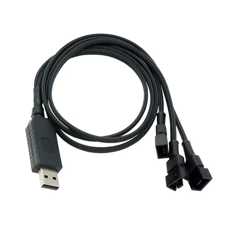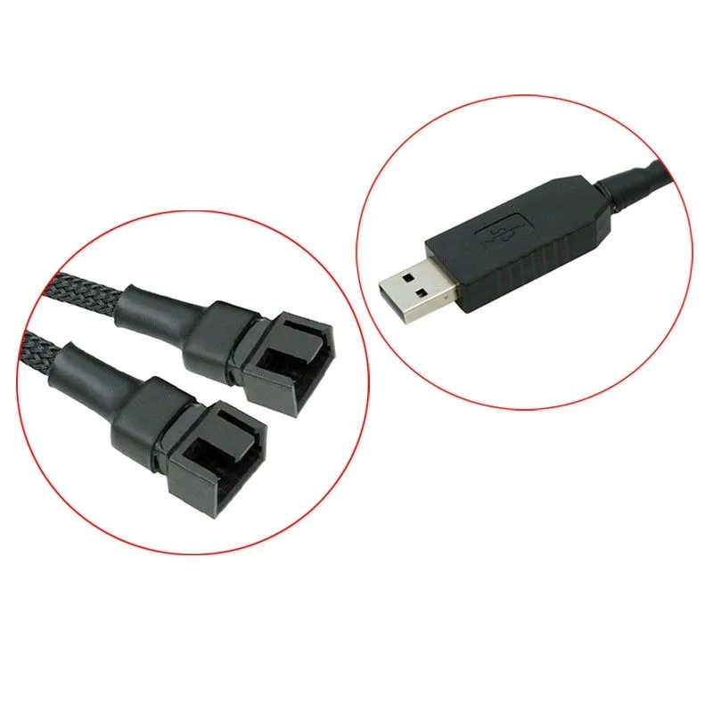 Comprar Cable adaptador de corriente de ventilador USB a PC Dual, manga negra, adaptador de velocidad de ventilador completo para ventiladores de refrigeración de 3 pines/4 pines, 0,5 M, 12V