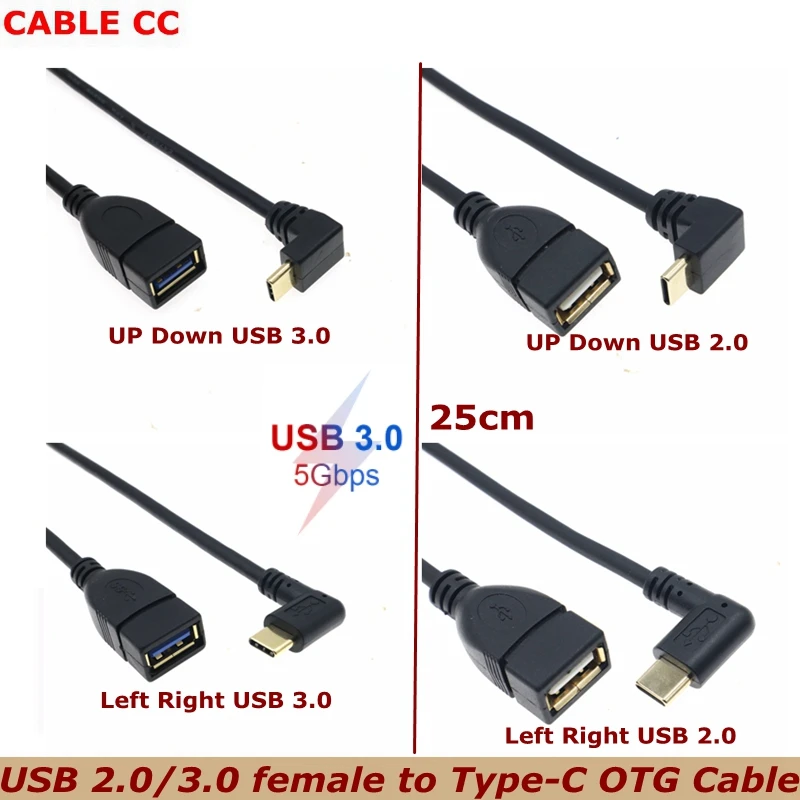 Comprar Cable adaptador de disco U para teléfono móvil y tableta OTG hembra, chapado en oro, 5Gbps, ángulo de 90 grados, tipo C, USB 3,1, revolución a USB 3,0