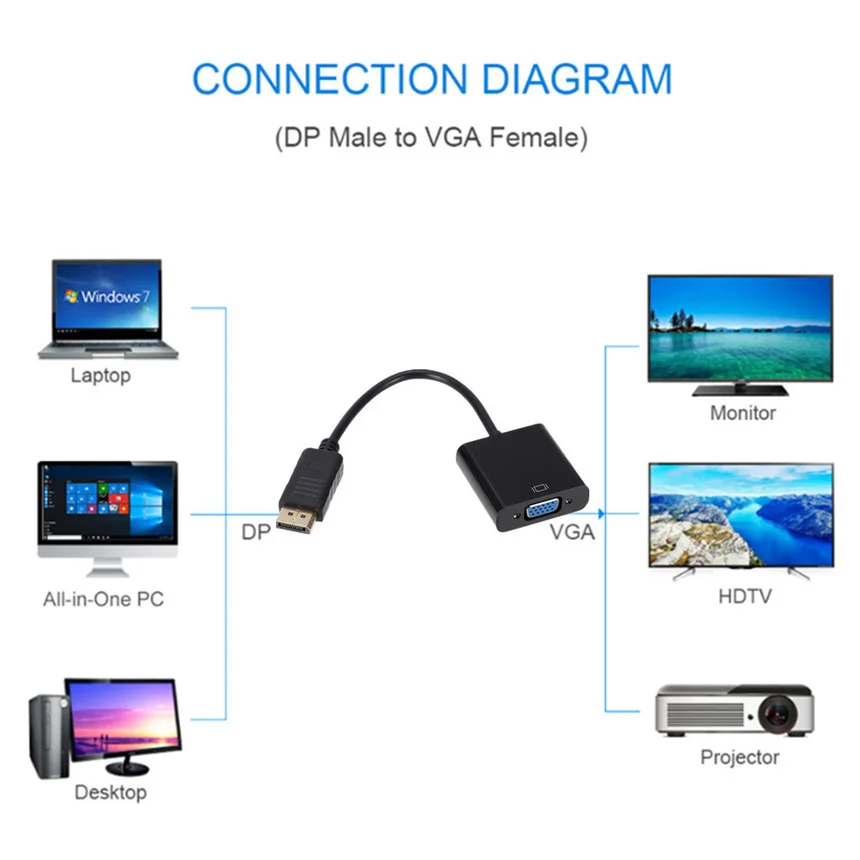 Comprar Cable adaptador DisplayPort DP a VGA, convertidor macho a hembra para PC, ordenador portátil, proyector de Monitor HDTV, 1080P