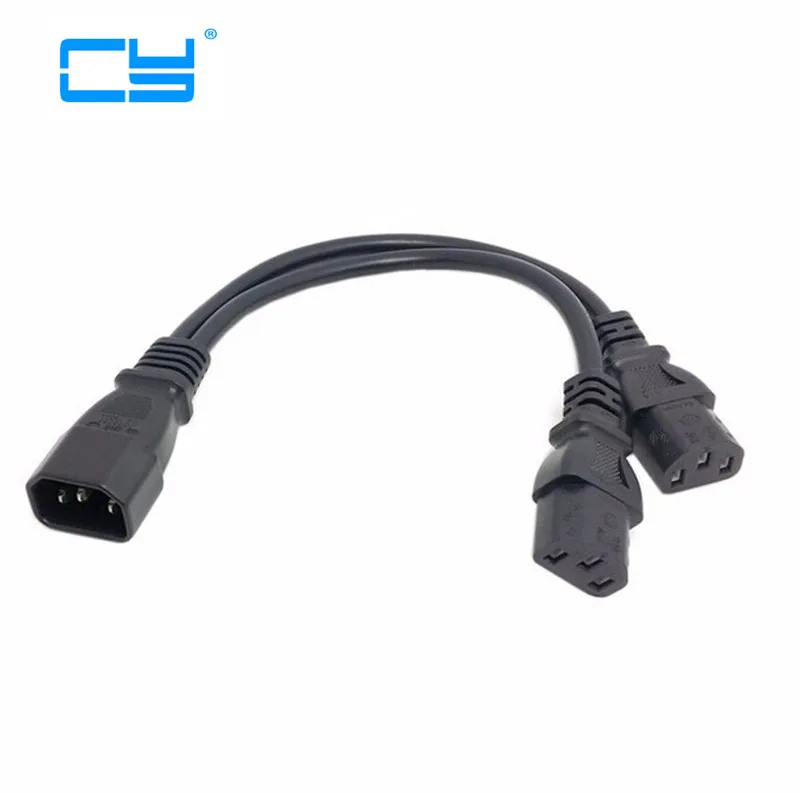 Single C14 to Dual 5-13R Short Power Y Type Splitter Adapter Cable Cord