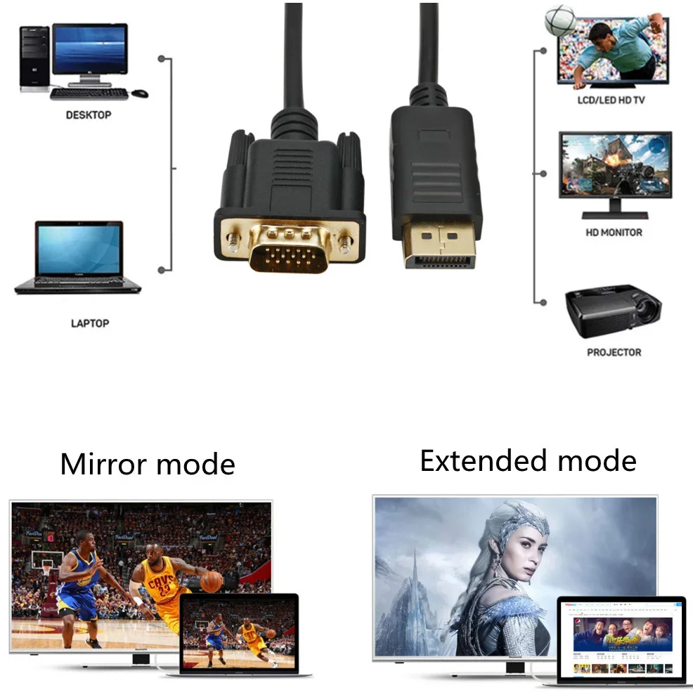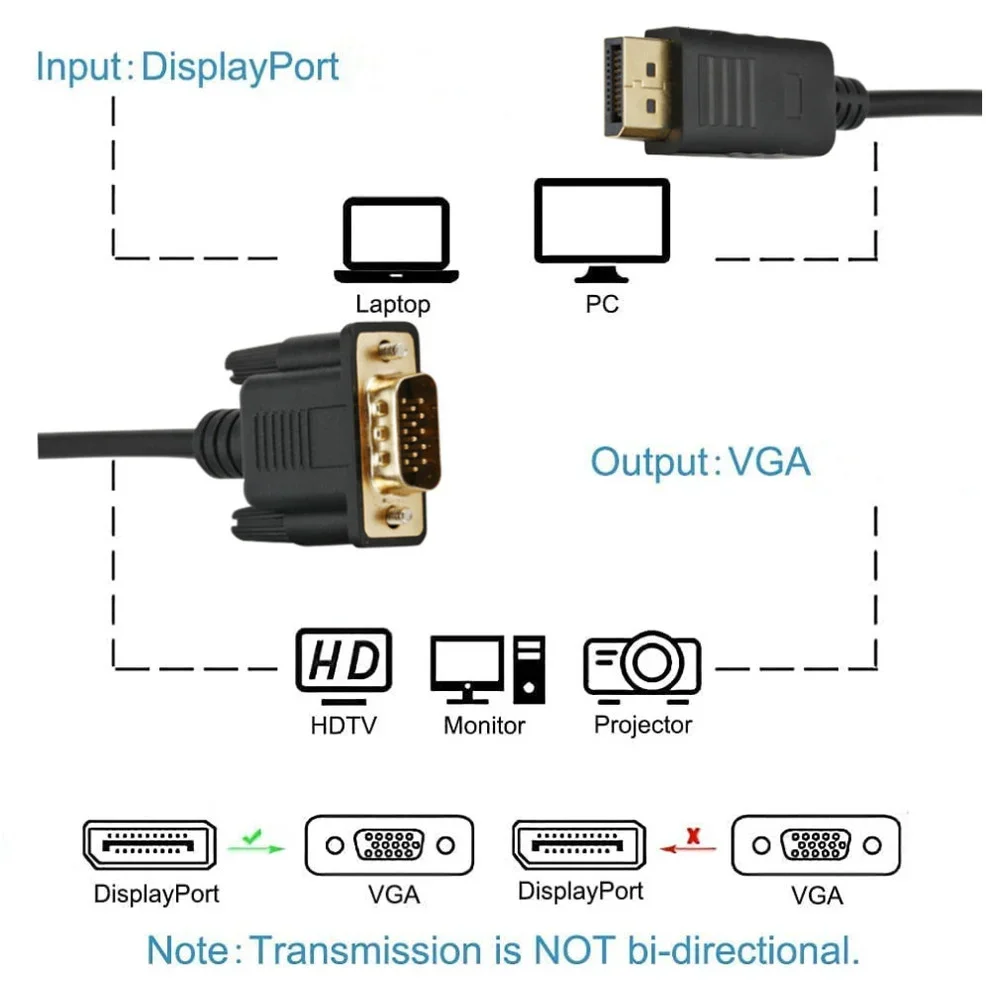 Comprar Cable adaptador DP a VGA de 1,8 m, convertidor 1080P DisplayPort macho a VGA macho para PC, ordenador portátil, TV, Monitor y proyector