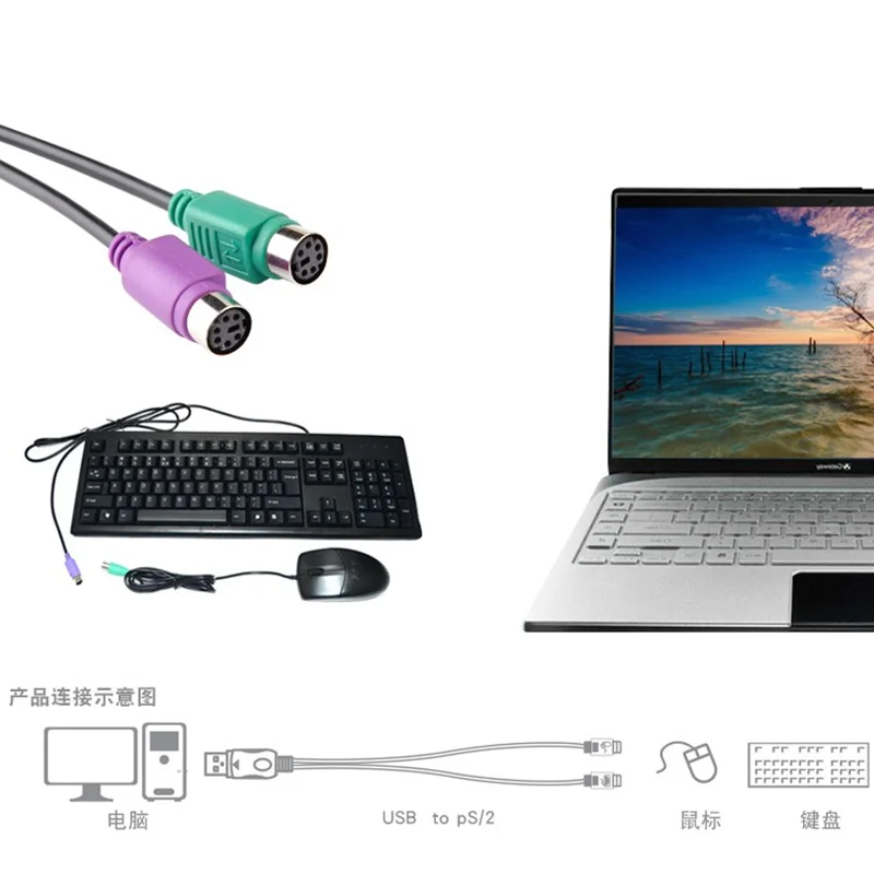 Comprar Cable adaptador Dual PS2 PS/2 MINI DIN de 6 pines a USB 2,0, convertidor para PC, ordenador portátil, teclado y ratón