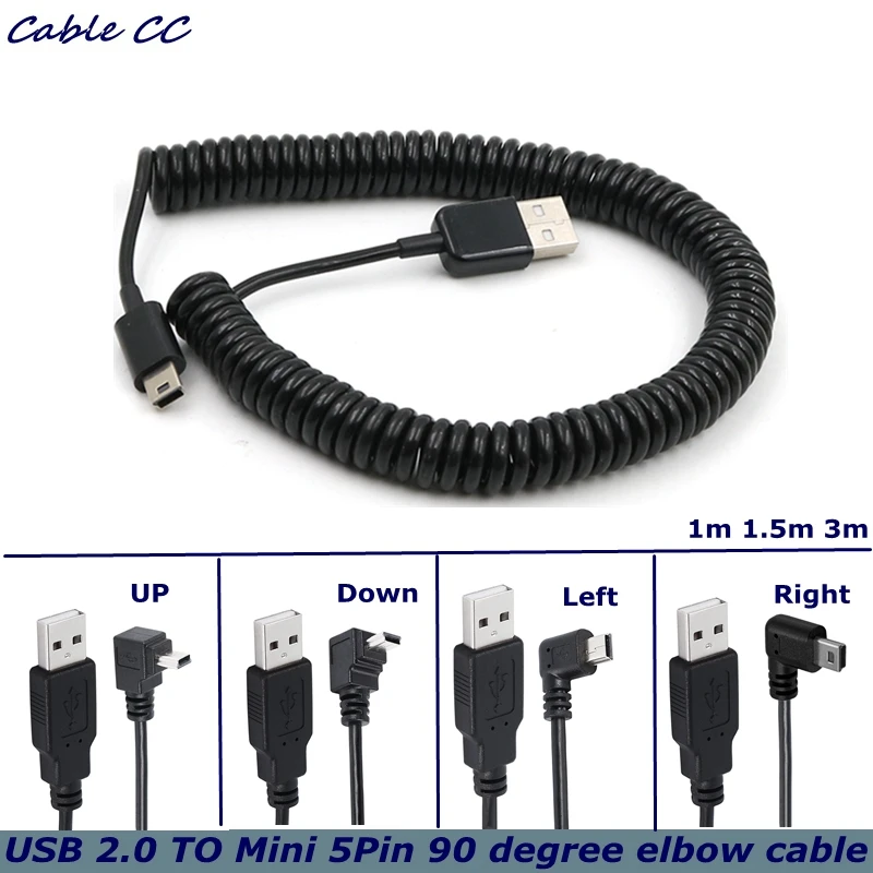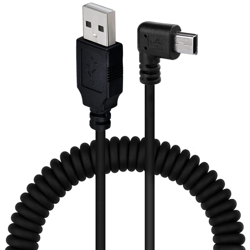 Comprar Cable adaptador en espiral en espiral de 90 grados, USB 2,0 A macho a Mini USB de 5 pines en ángulo recto, 5 pies para reproductores MP3, cámaras digitales, 3m