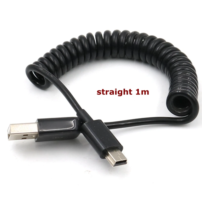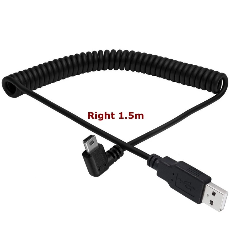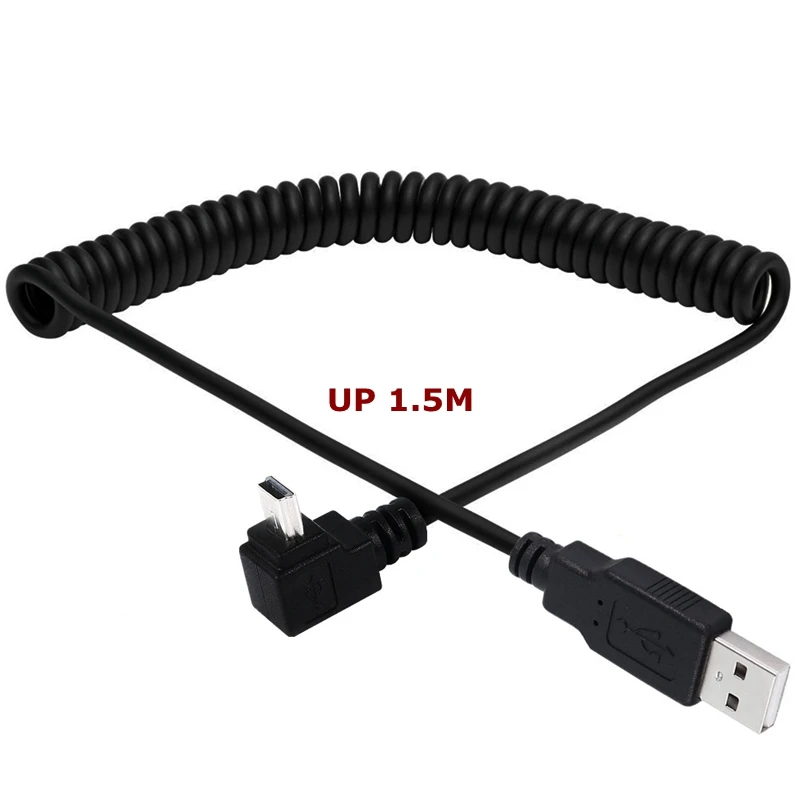Cable elástico de resorte USB2.0 disco duro cámara digital cable de datos de teléfono móvil puerto en forma de T AM-Mini 5P doblado 90° arriba y abajo, izquierda y derecha, 1,5 metros;