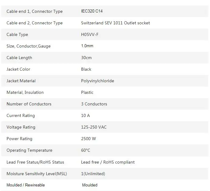 Comprar Cable adaptador de enchufe IEC C14 a suizo de 30cm, convertidor SEV 1011 tipo J hembra a C14 macho, 10A 250V para conexión de alimentación UPS PDU