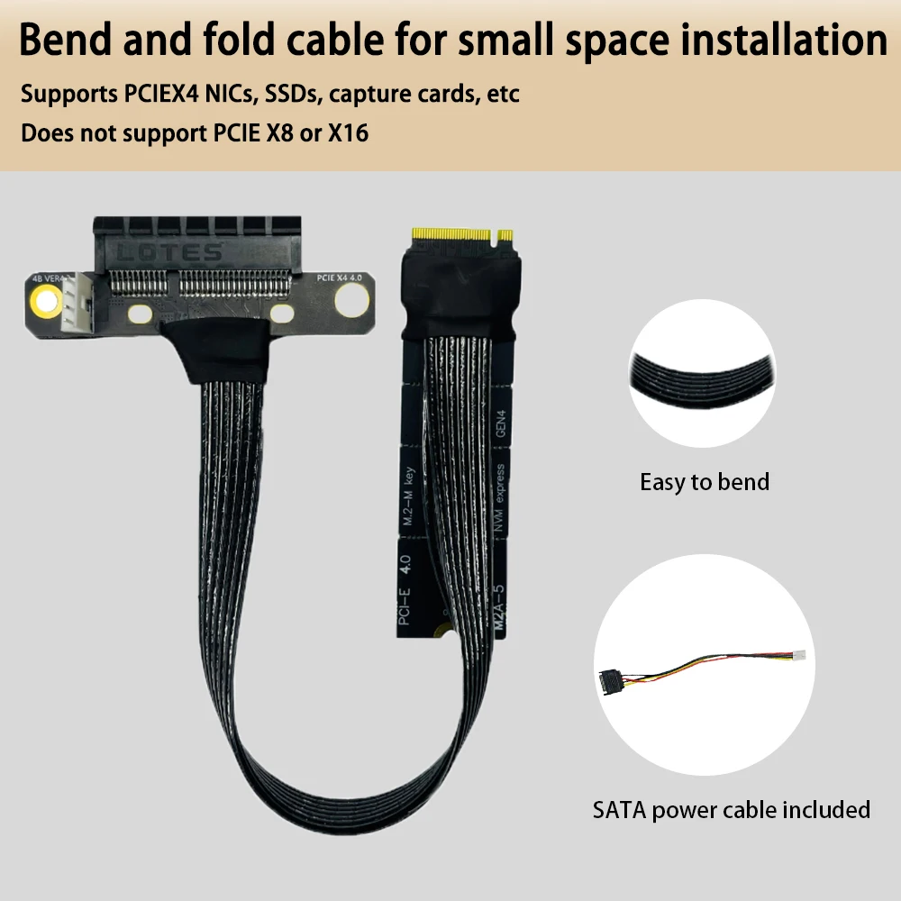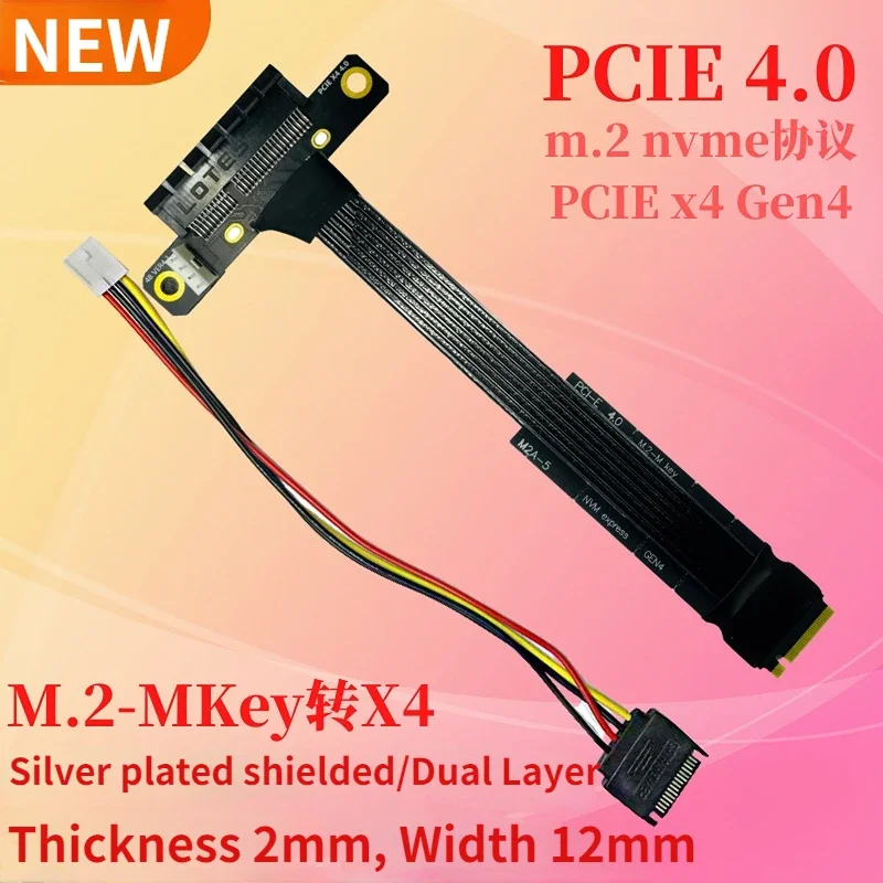 Comprar Cable adaptador de extensión de alta velocidad M.2 NVMe a PCI-E 4,0 X4, blindaje plateado GEN4 NVME M-KEY M.2 SSD con Cable SATA